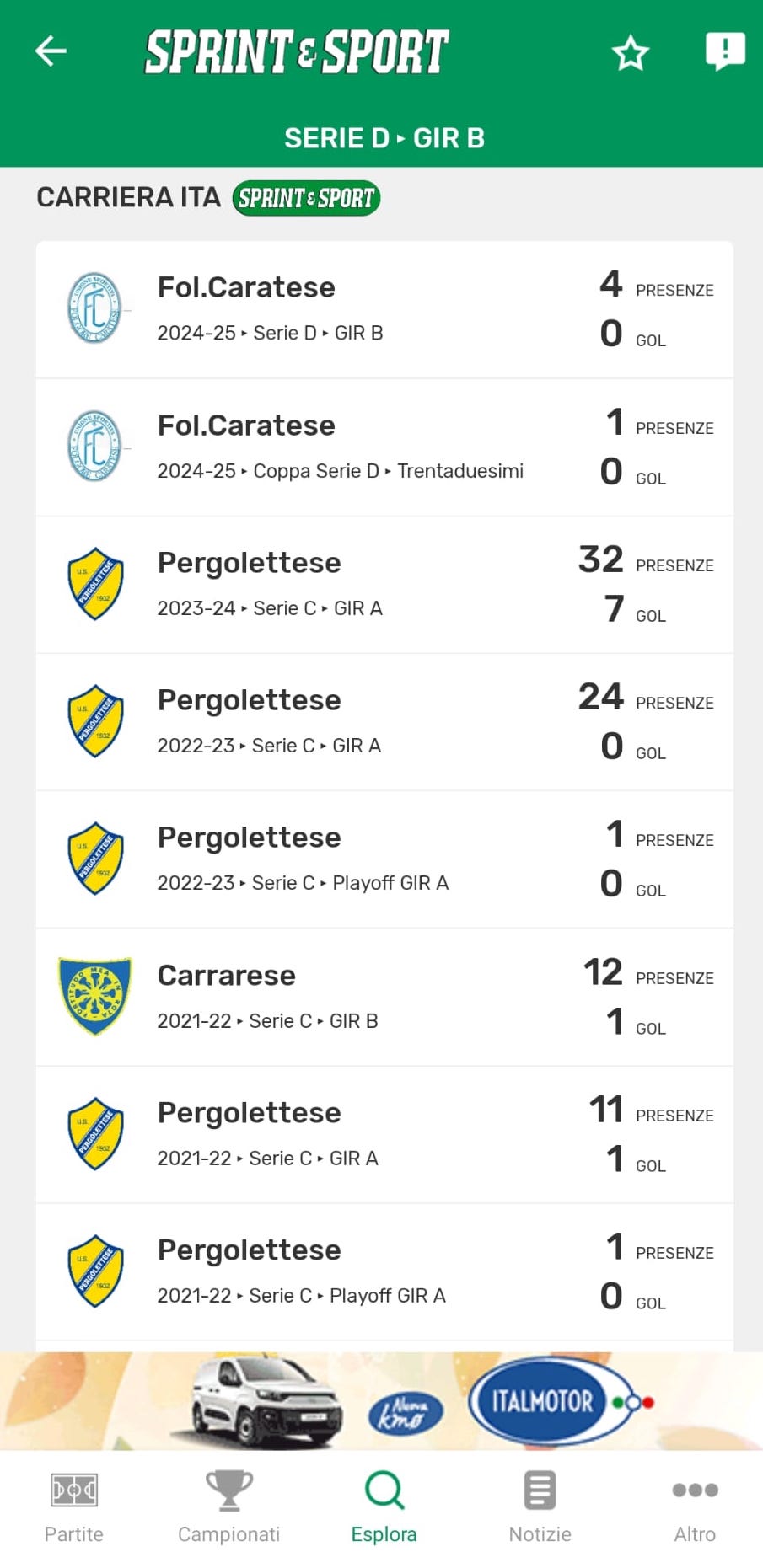La carriera recente di Andrea Mazzarani: scarica la app per tutte le statistiche individuali e di squadra della Serie D