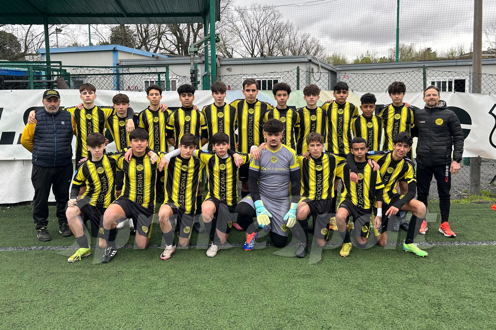 Dopo aver sfornato goleade su goleade durante questo Girone B di Under 15, per ambe le squadre, arriva il momento del confronto tra chi segna più gol: il Carrara di Roberto Raffaele presenta a questo match cercando spesso le giocate lunghe in stile football americano per aprire le porte delle retroguardia giallonera che, si è dimostrata ben solida, impedendo proprio ai biancoverdi di colpire nel segno, disimpegnando soltanto a metà ripresa grazie al guizzo di Francesco D'Elia, al quale spiazza facilmente Alex Mangione. Per quanto riguarda il Dorina di Davide Vitelli, dopo un primo tempo costruito all'insegna del palleggio veloce per spuntarla di sorpresa una volta sotto porta, sbloccano il match in soli 4 minuti dalla ripresa, prima, con Mouad Badreddine dopo appena un minuto, si impegna ad aprire in due la retroguardia biancoverde per poi spolverare la porta difesa da Samuele Taurino. 3 minuti dopo Yassin Yafouri costruisce l'azione in fascia, e poi Idris Attya la chiude appoggiandola in porta, tornando al gol dopo 2 mesi dall'ultima volta che ha giocato riprendendo in mano il suo Dorina segando diversi gol al suo rientro. Ed infine, al tramonto dell'incontro chiudono il discorso vittoria con due prodezze da calcio piazzato, prima, con Amin Zouhari che, la infila all'angolino destro calciando potente sul palo e poi in rete, e pochi minuti dopo ci pensa il capitano Francesco Gesuè che, piazza il pallone all'angolo sinistro dove Taurino non può arrivarci.