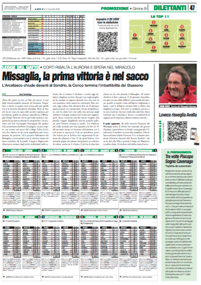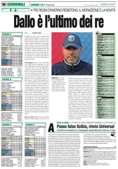 Sul giornale in edicola da lunedì 12 dicembre, disponibile anche in versione digitale consultando l'apposita parte del nostro portale web, ben 13 pagine incentrate sul calcio giocato con la nuova giornata dei campionati di Serie D, Under 19 Nazionale, Eccellenza, Promozione, Under 19 Regionale e Under 18 e una di approfondimento sulla Coppa.
