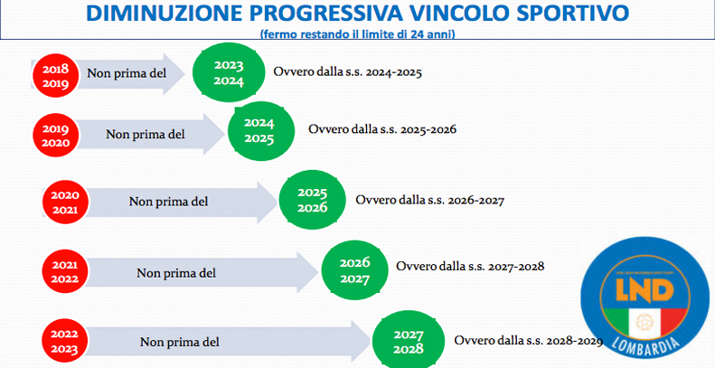 La proposta è prevedere, a seconda dell’anno in cui si è firmato il vincolo e tenendo sempre il limite dei 24 anni, una diminuzione progressiva: chi ha firmato ad esempio il vincolo nel 2022-2023, potrà liberarsi dal 2027-2028 e così via per le stagioni precedenti.