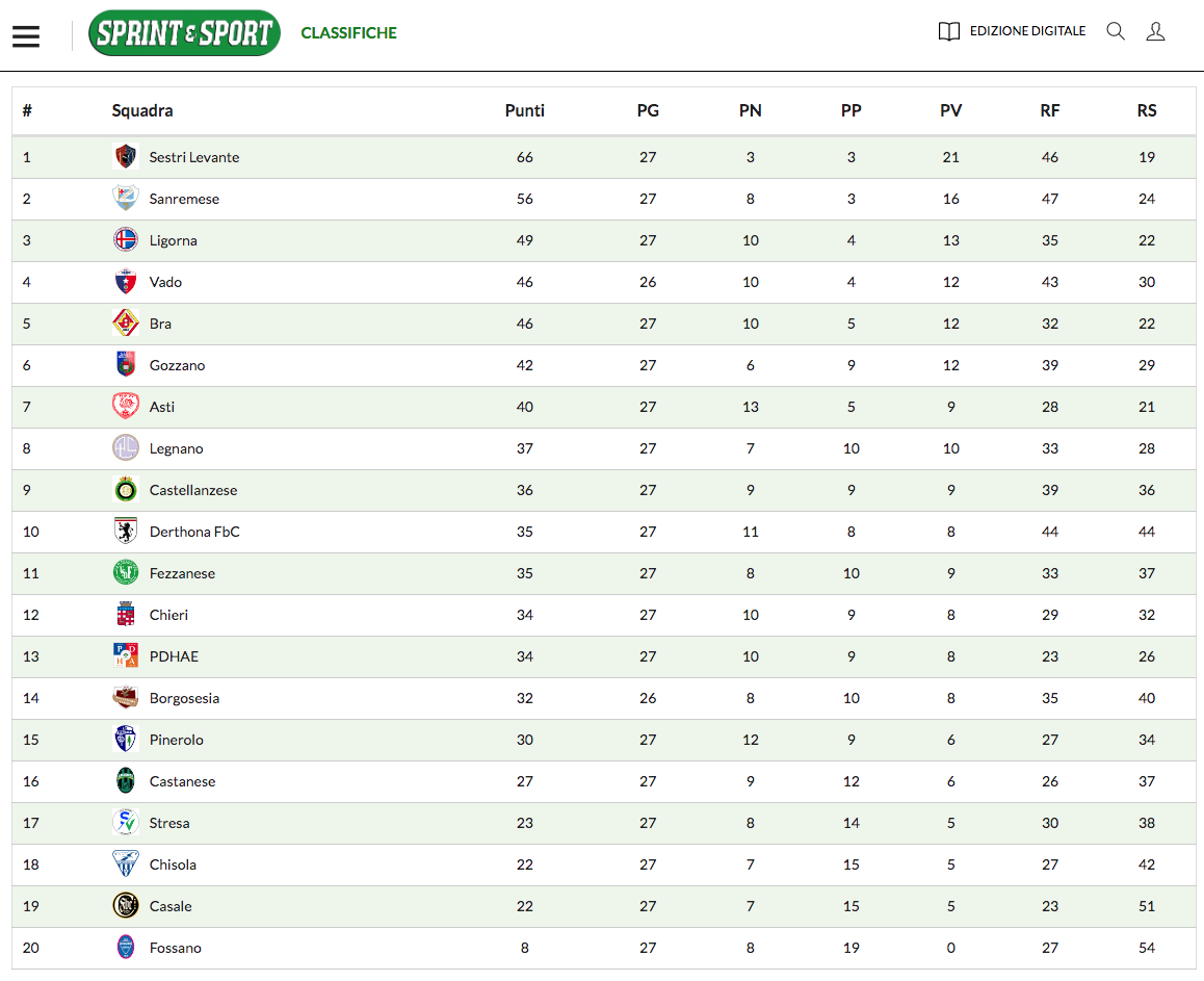 Con la ‘chimera-salvezza’ ormai quasi matematicamente irraggiungibile, visti gli 8 punti in classifica, a -22 punti dall’ipotetica rivale playout (che non si disputa lo ricordiamo quando ci sono 8 o più punti di distacco…), che al momento sarebbe il Pinerolo a 30 punti, viste le ormai ‘solo’ 11 giornate alla fine del campionato regolare da disputare. Come detto la matematica lascia ancora ‘spazio’ alle speranze, quelle che però il campo, giornata dopo giornata, allontana sempre di più, avvicinando al contrario il giorno della sentenza, per la squadra e la società cuneese, alla quarta stagione consecutiva in Serie D dopo la splendida cavalcata dalla Promozione.
