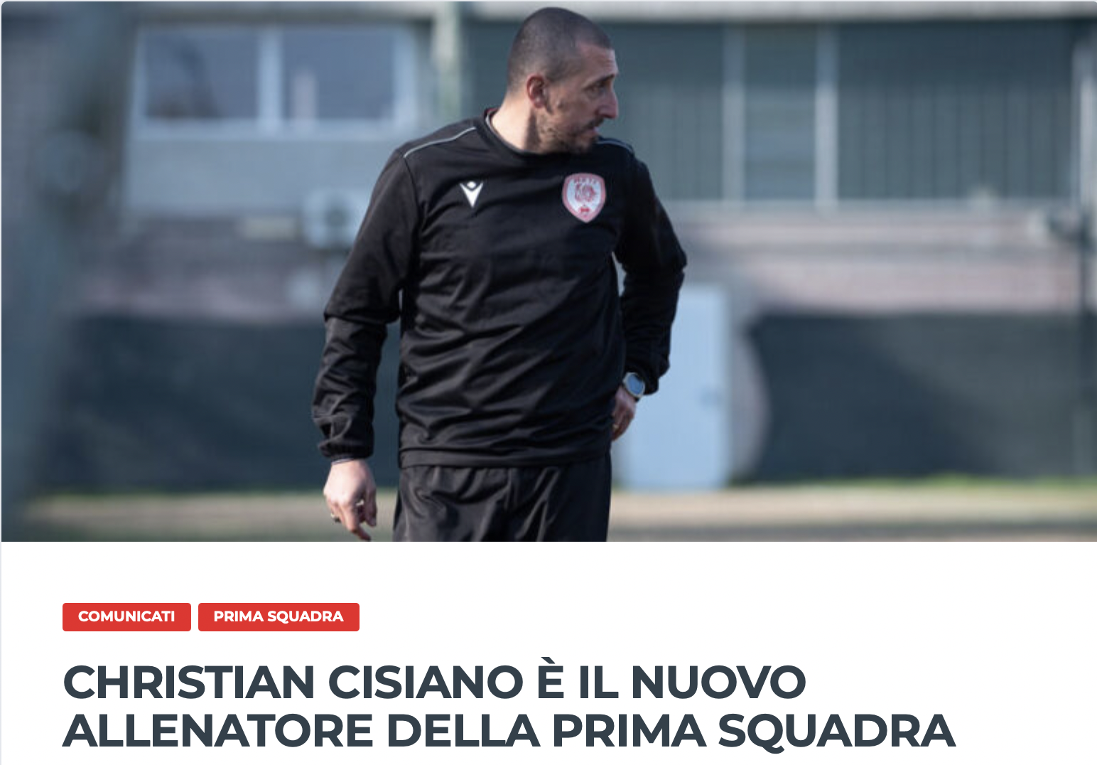 «CHRISTIAN CISIANO NUOVO ALLENATORE DELLA PRIMA SQUADRA»