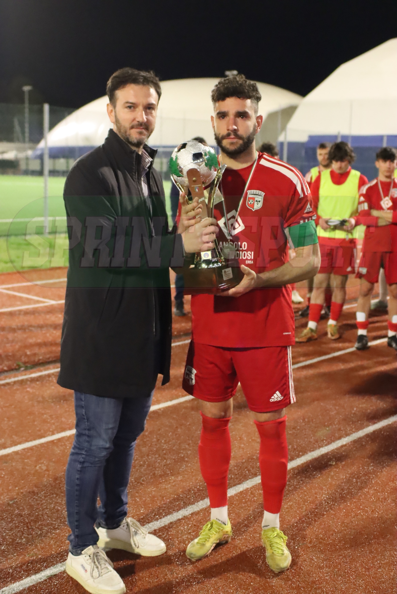 Lorenzo Molteni, capitano dell'Arcellasco, con la coppa del secondo classificato (FOTO CASTAGNA)