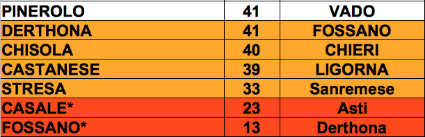 - In caso di vittoria: Pinerolo e/o Derthona, Chisola e Stresa non vincono