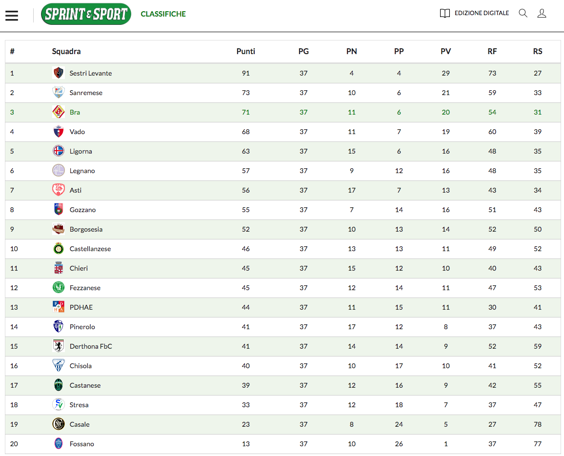 - In caso di vittoria: Pinerolo e/o Derthona, Chisola e Stresa non vincono