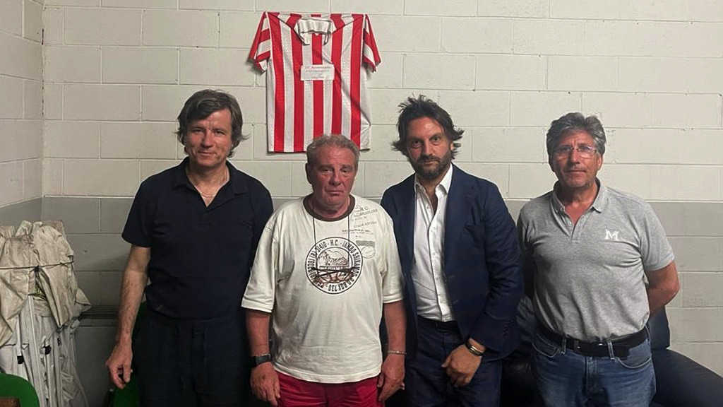 La foto scattata al momento del cambio societario, col passaggio del Landriano da Freni (centro-sinistra), a Cima (centro-destra).