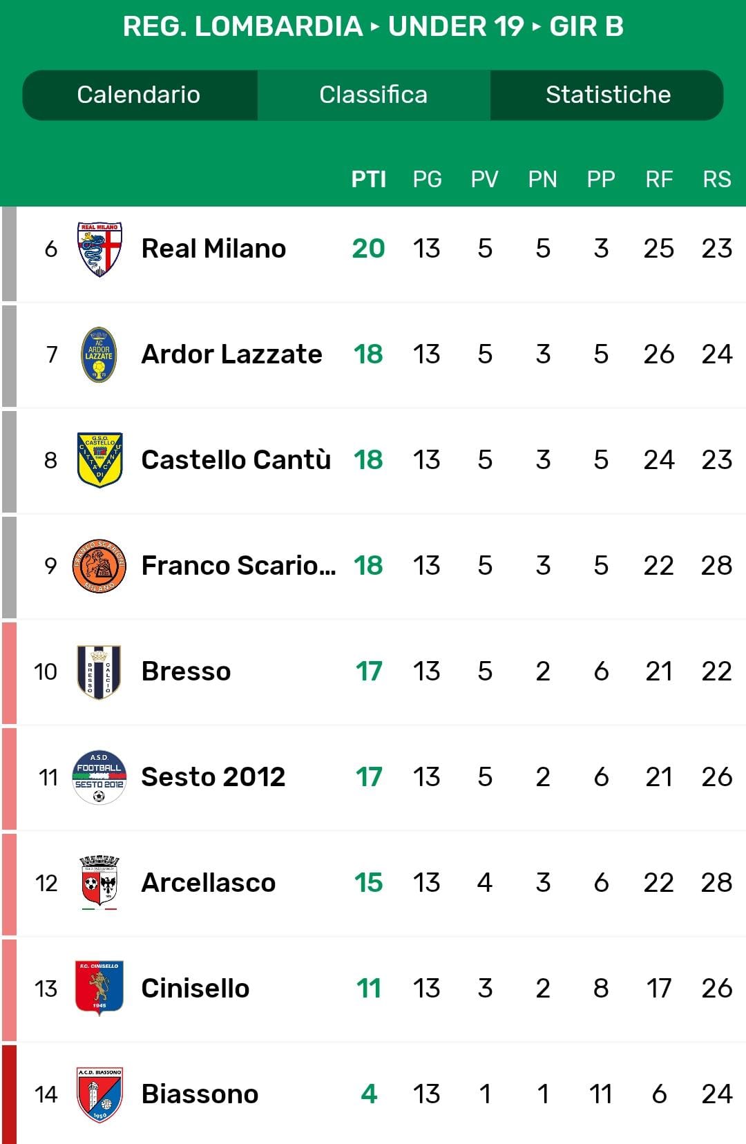 14.7, è questa la media dei ragazzi che Luca Bertin, tecnico dell'Under 19 del Bresso, ha potuto convocare per tutto il girone d'andata. Si va infatti dai picchi di 17 giocatori in distinta, cosa successa soltanto tre volte su 13 partite - tra l'altro vincendo solo con il Meda all'esordio e perdendo le altre due sfide -, ai 13 (due volte) e 14 (una volta) delle ultime quattro giornate, concluse come detto in 12 nella delicata partita col Castello. Una situazione specchio di una rosa di per sé corta, priva dei classici aiuti dalla prima squadra e con varie assenze dovute a infortuni e cartellini.