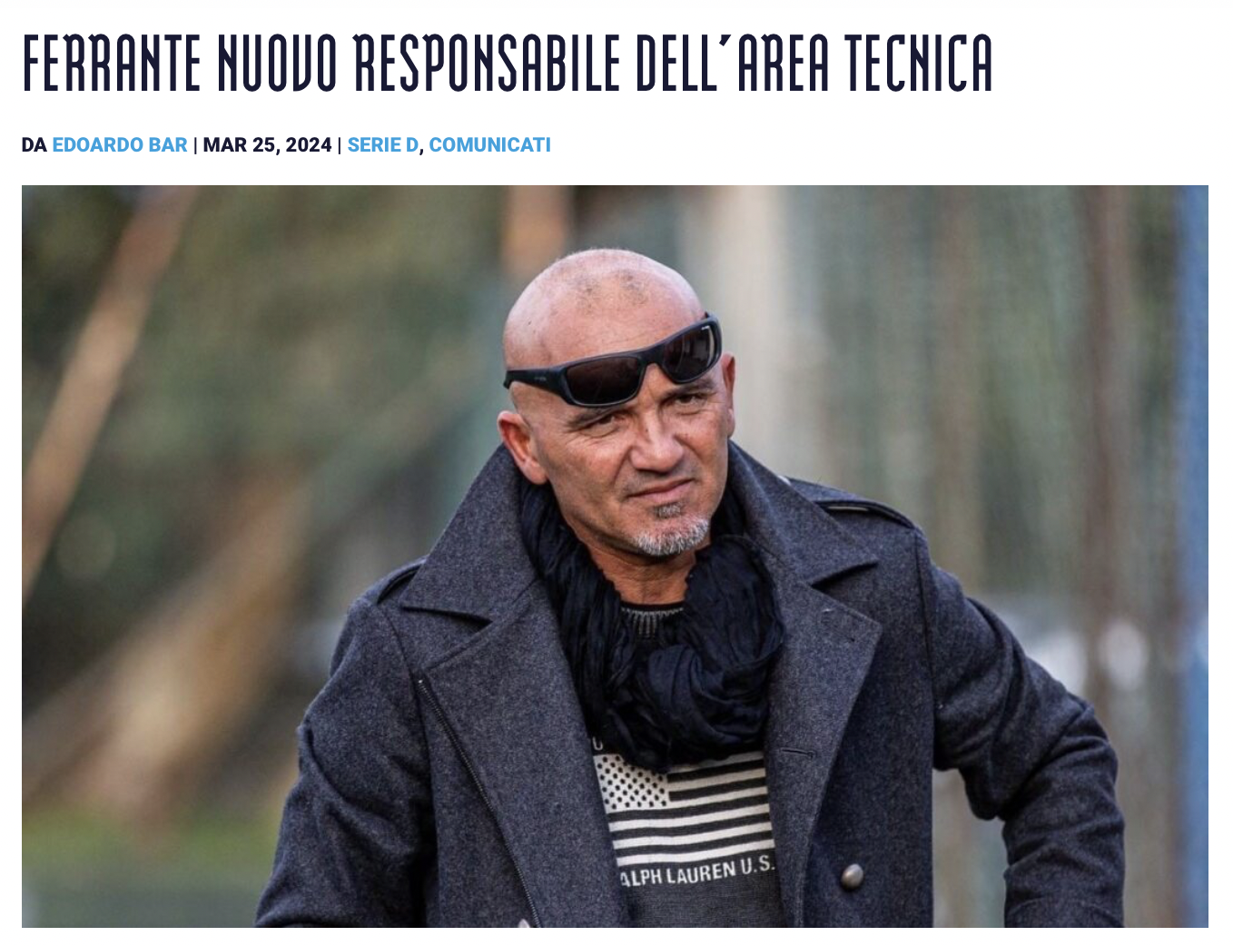 «Intanto però il Chieri non lavora solo per mantenere la categoria Serie D, ma anche per crescere e comunica un importante arrivo all’interno del suo organigramma: si tratta di un volto noto come Marco Ferrante, ex bomber del Torino che è ufficialmente il nuovo Responsabile dell’Area Tecnica».
