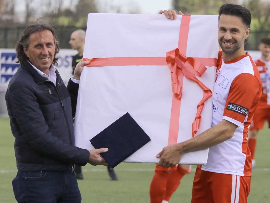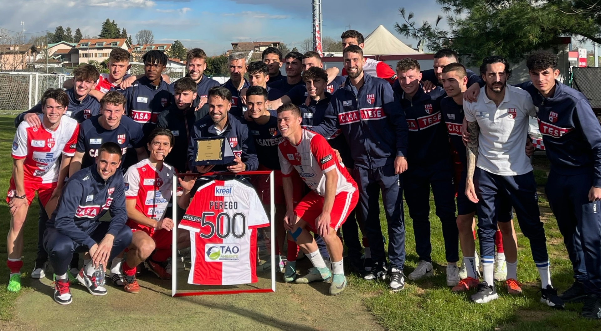 All'apparenza è una domenica come altre. I tacchetti, prossimi all'ingresso sul terreno di gioco, scalpitano dando vita alla rituale sinfonia che precede i 90' regolamentari. Matteo Perego, come il resto della rosa della Casatese, è pronto ad affrontare l'Arconatese nella gara valida per la 32esima giornata del girone B di Serie D. Il difensore classe '88, con molta probabilità, sta ripensando a quanto preparato tatticamente durante la settimana. Sì, è vero, per lui questa partita racchiuderebbe al suo interno un ulteriore significato e lo avrebbe accennato tempo prima al compagno, e amico, Mattia Isella, salvo poi non tornare più sull'argomento. Perego, quindi, si concentra sul match. Isella, però, non ha dimenticato quel discorso e ne he fatto parola con il Presidente biancorosso Gianni Sassella, che si presenta a bordo campo per abbracciare e celebrare il proprio leader del reparto arretrato: Matteo Perego ha raggiunto le 500 in presenze in carriera.