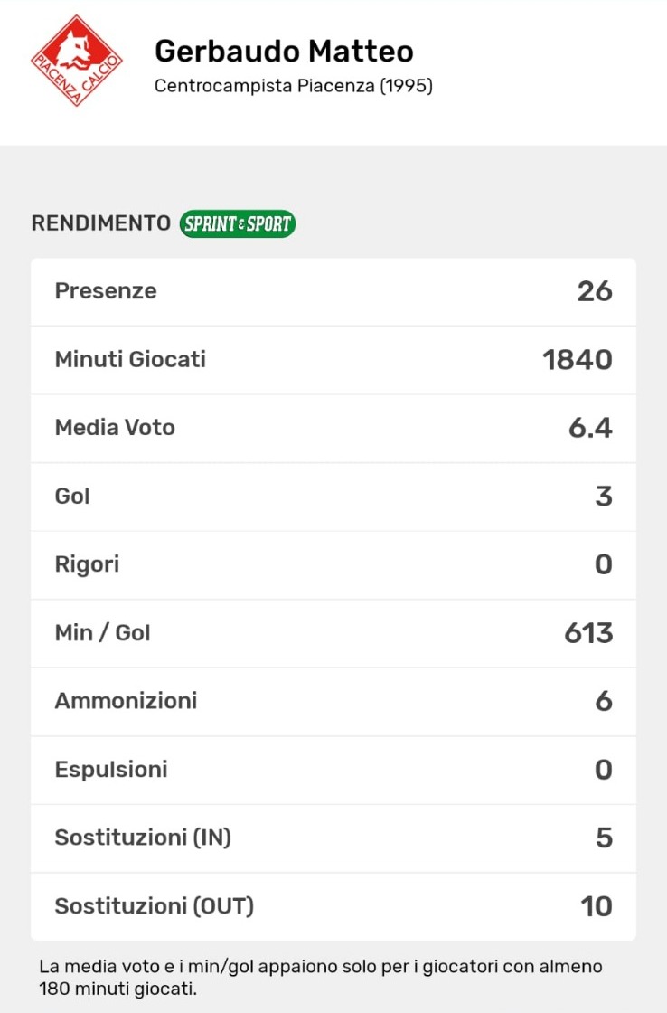 PIACENZA SERIE D- MATTEO GERBAUDO