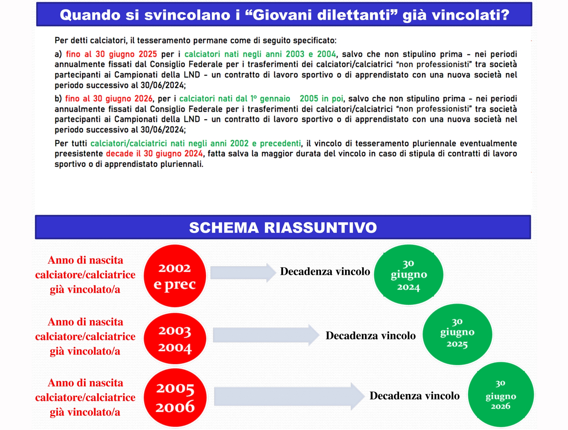 Il punto è stato chiarito: la continuità di tesseramento si intende rimanere tesserato per la stessa società. Infatti, per chi è in continuità di tesseramento, esso vale fino al 30 giugno 2025 per i nati nel 2003 e 2004, mentre vale fino al 30 giugno 2026 per i nati nel 2005 e 2006. Tradotto, un calciatore in continuità di trasferimento non è libero di andare dove vuole.