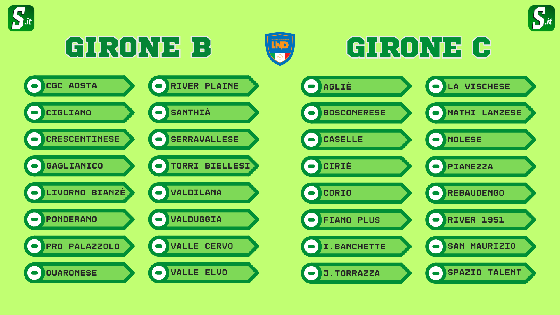 Al discorso affrontato in chiusura sul Girone B, si collega evidentemente il Girone C. Vista la volontà certificata delle valdostane di rimanere nel B per motivi logistici (trasferte più comode), s'ipotizza una conferma per Vischese e Torrazza nel raggruppamento, così come la presenza del Banchette, che andrebbe a sostituire geograficamente il Valchiusella. Tuttavia, il Girone C appare di controversa definizione: similmente a quanto accaduto con l'ultimo Girone D di Seconda Categoria potrebbe esserci un bel minestrone. Confermate le società del Canavese e delle Valli Di Lanzo, rimango 4 posti da chiarire e la sensazione è che ivi vengano inserite alcune torinesi "comode". Il River in primis resterebbe nel C, il Rebaudengo sarebbe la più ragionevole per la vicinanza con la SuperStrada per Caselle, dopodichè due dubbi amletici. Lo Spazio Talent potrebbe percorrere la stessa sorte toccata due anni fa alla Torinese, mentre tornerebbe di moda il tema del Pianezza, che nel C giocò alcune stagioni addietro. Eppure le due sarebbero solo una soluzione a rigor di esclusione, due scelte comunque forzate.