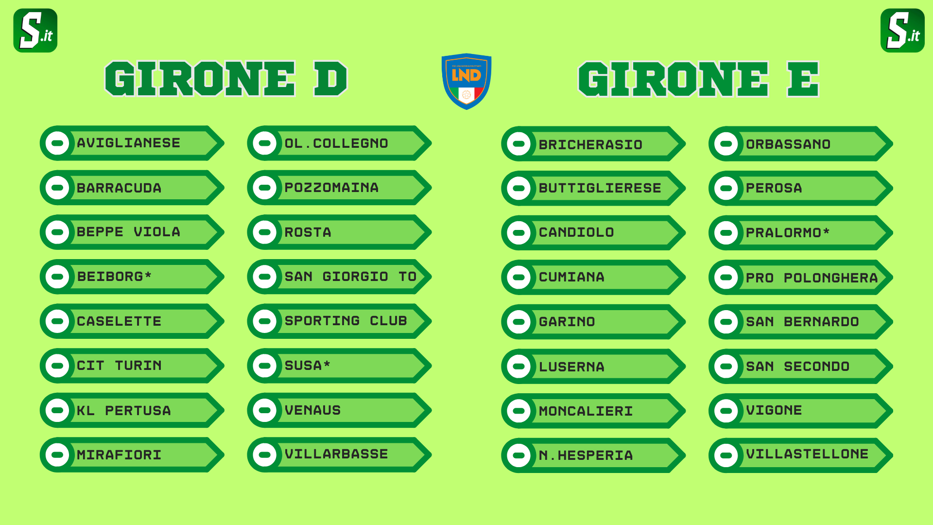 Escludendo temporaneamente STS e Pianezza, i due posti vacanti potrebbero essere assegnati a tante squadre che si muovono sul confine sud-ovest della cintura torinese. Visto il collocamento nell'ultimo Girone B di Promozione, questo potrebbe essere il caso del Villarbasse; ultimo slot di difficile lettura, puntiamo sul Beiborg vicino a Mirafiori e poiché sarebbe difficile spostare squadre che si accoppiano facilmente con altre.
