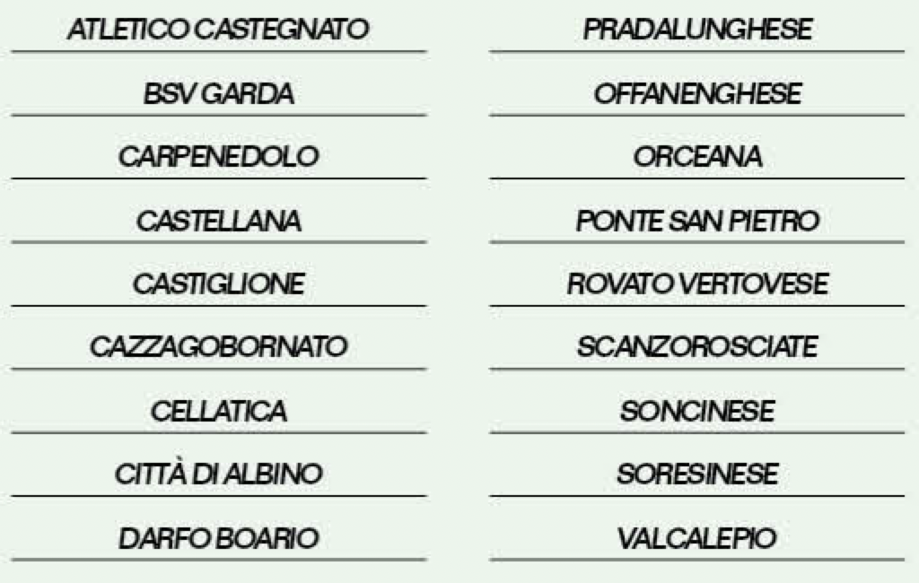 La notizia più importante è sicuramente l'arrivo dalla Serie D non solo dell'Atletico Castegnato, ma anche del Ponte San Pietro, che, escluso da un Girone B con già tante pretendenti al titolo, rende forse più competitivo quello delle fusioni. Altre news sono l'inserimento dello Scanzorosciate e l'assenza del Casazza, più lontano dalle formazioni del gruppo B rispetto al trittico formato dai giallorossi, dalla Pradalunghese e dal Città di Albino, riunite in un C che per il resto rispecchia le aspettative.