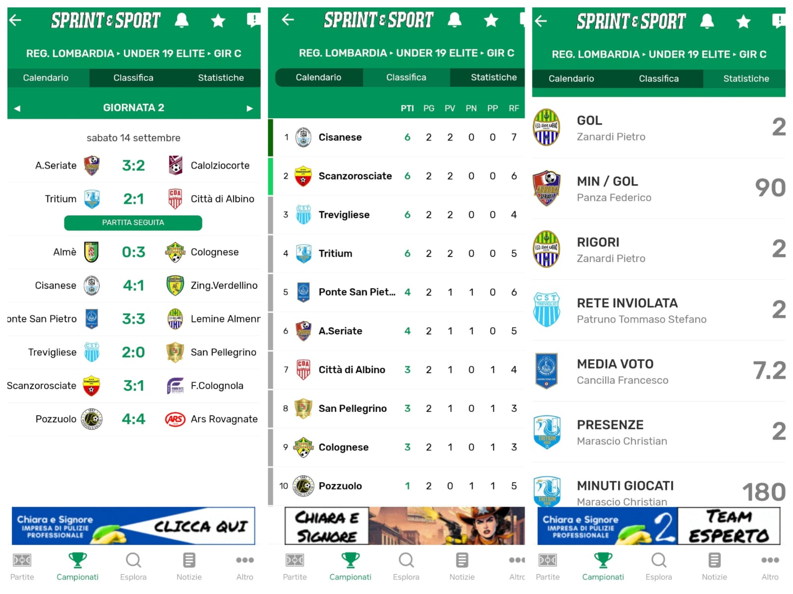 Clicca l'immagine per scaricare l'applicazione di Sprint e Sport e abbonati per consultare tutte le statistiche del tuo campionato