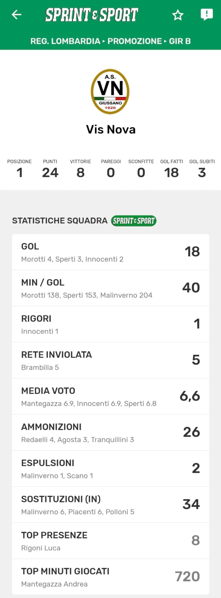 Le statistiche di squadra della Vis Nova, disponibili solo sulla nostra app. Clicca l'immagine per scaricarla e abbonati!