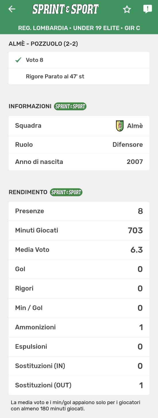 La pagella di Stefano Turani nel match con il Pozzuolo e le sue statistiche complete e verificate, disponibili solo sull'app di Sprint e Sport. Clicca l'immagine per scaricarla e abbonati!