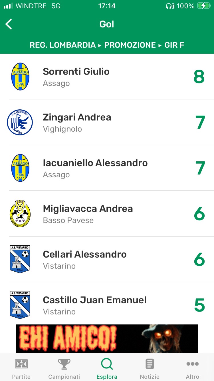 La classifica marcatori che vede Sorrenti, Zingari e Iacuaniello in vetta, clicca l'immagine per scaricare l'app di Sprint!