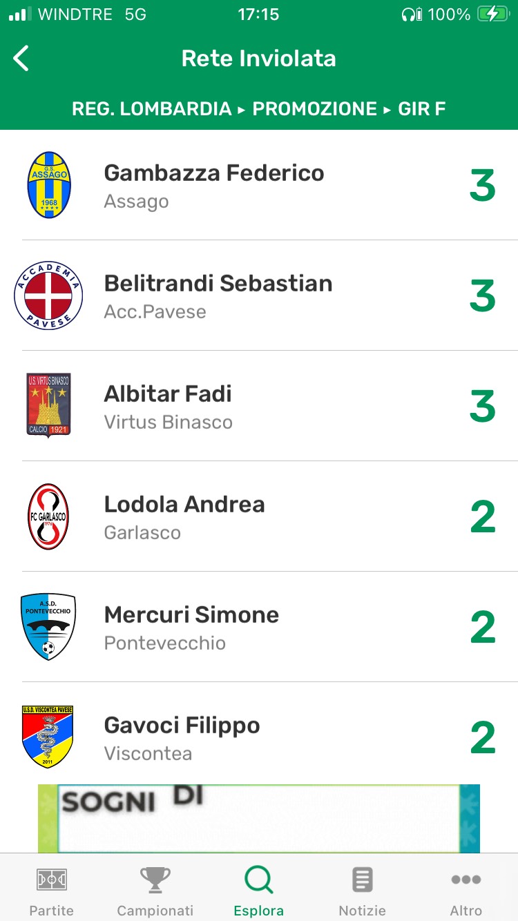 I portiere con più clean sheet, una delle statistiche disponibili sull'app di Sprint e Sport