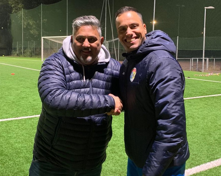 Il ds Gino Zumpano stringe la mano al nuovo tecnico