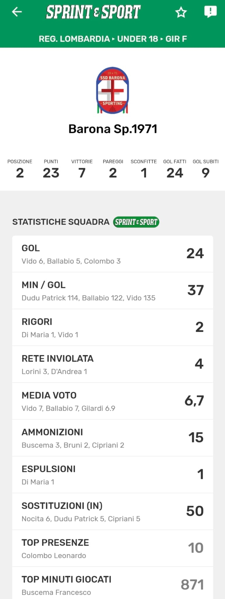 Le statistiche di squadra della Barona, disponibili solo sull'app di Sprint e Sport: clicca l'immagine, scarica l'app e abbonati per scoprirle tutte!