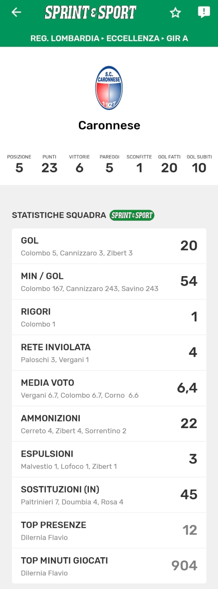 Le statistiche di squadra della Caronnese, disponibili solo sull'app di Sprint e Sport: clicca l'immagine, scarica l'app e abbonati per scoprirle tutte!