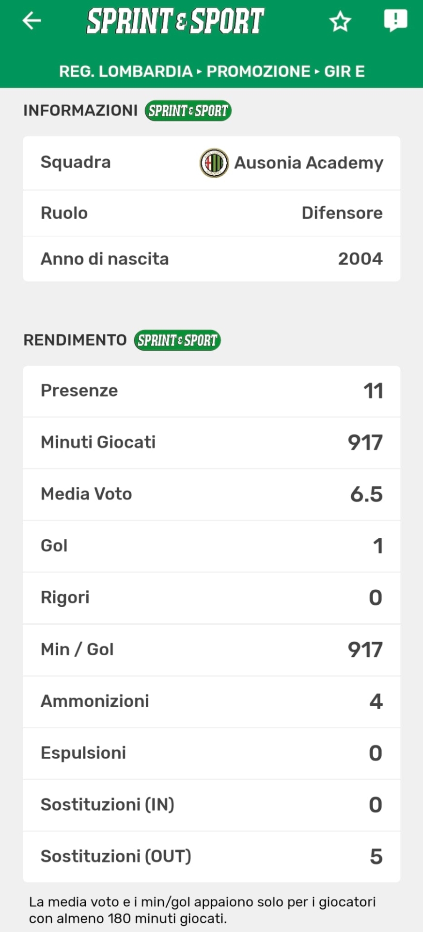 Il vincitore dell'altro grande duello targato MVP. Contro Colombo della Barona è uno sprint di due giorni, ma alla fine i 400 voti di differenza premiano il classe 2007 del Rozzano, autore della rete che dà il via a una rimonta pazzesca. È infatti il centrocampista a siglare il momentaneo 1-1 contro il Pavia, poi battuto in campo e superato sulla vetta della classifica del Girone E. Una rete, tra l'altro, già seguita da una doppietta in casa dell'Union Basso Pavese nell'ultimo turno di campionato. Del tipo: la giuria ci ha visto lungo.