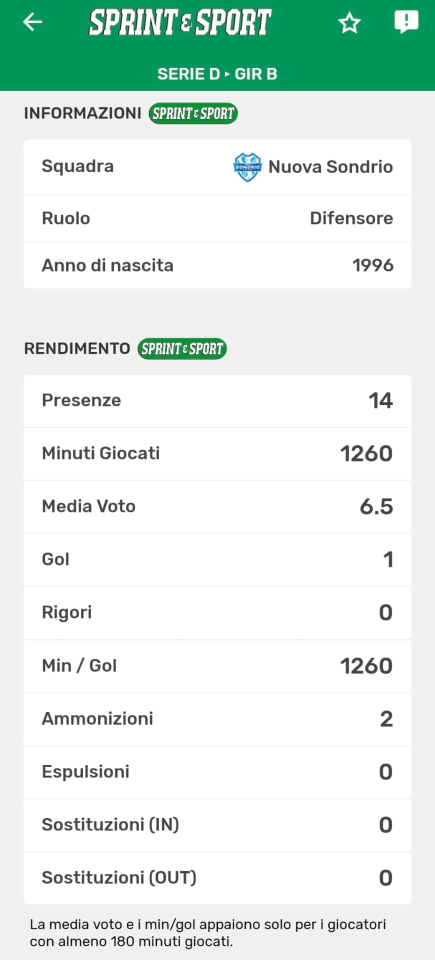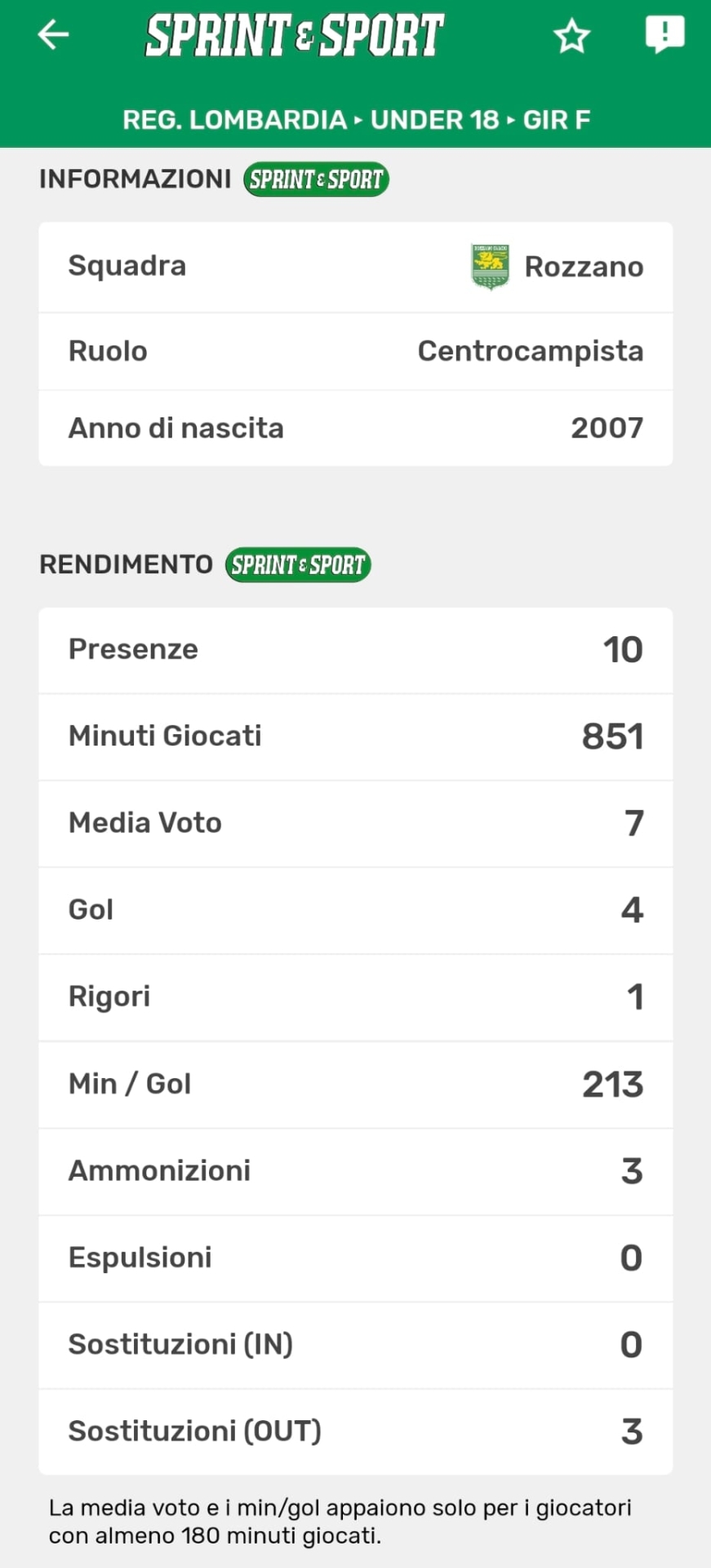 Le statistiche complete di Roveda, disponibili solo sull'app di Sprint e Sport: clicca l'immagine, scarica l'app e abbonati per scoprirle tutte!