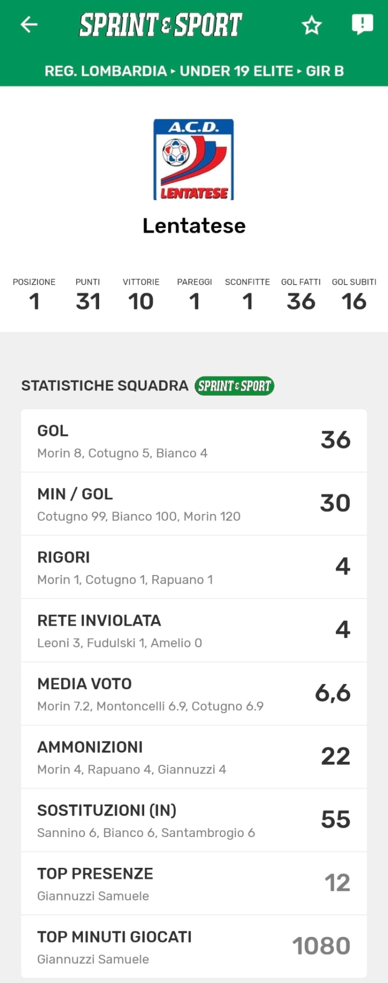 Le statistiche di squadra della Lentatese, disponibili solo sull'app di Sprint e Sport: clicca l'immagine, scarica l'app e abbonati per scoprirle tutte!