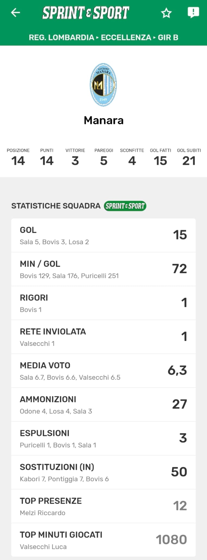 Le statistiche di squadra della Manara, disponibili solo sull'app di Sprint e Sport: clicca l'immagine, scarica l'app e abbonati per scoprirle tutte!