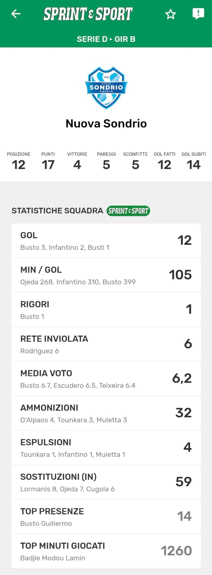 Le statistiche di squadra della Nuova Sondrio, disponibili solo sull'app di Sprint e Sport: clicca l'immagine, scarica l'app e abbonati per scoprirle tutte!