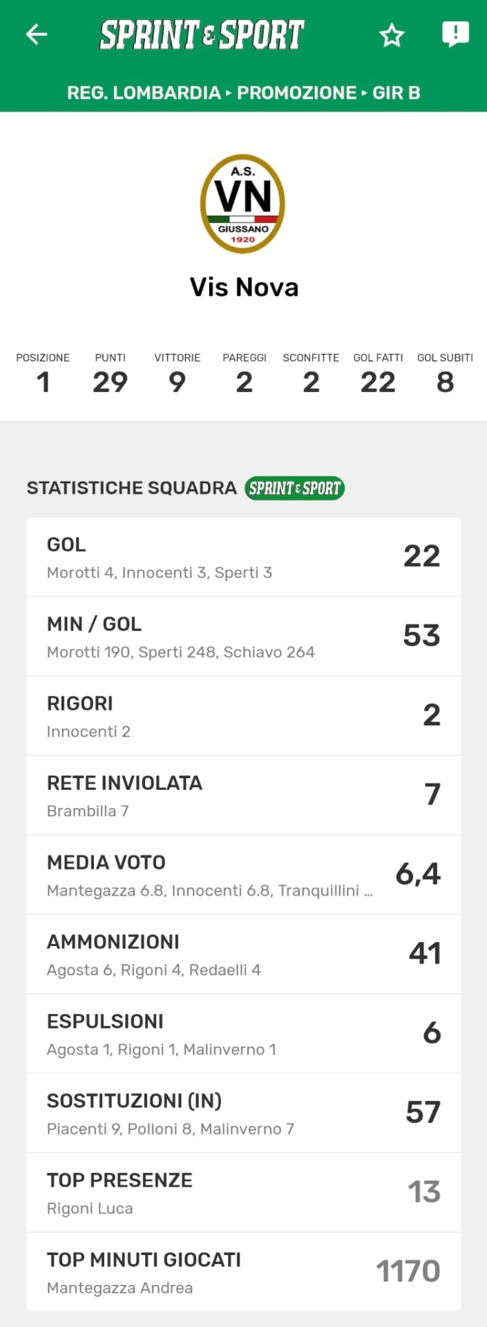 Le statistiche di squadra della Caronnese, disponibili solo sull'app di Sprint e Sport: clicca l'immagine, scarica l'app e abbonati per scoprirle tutte!
