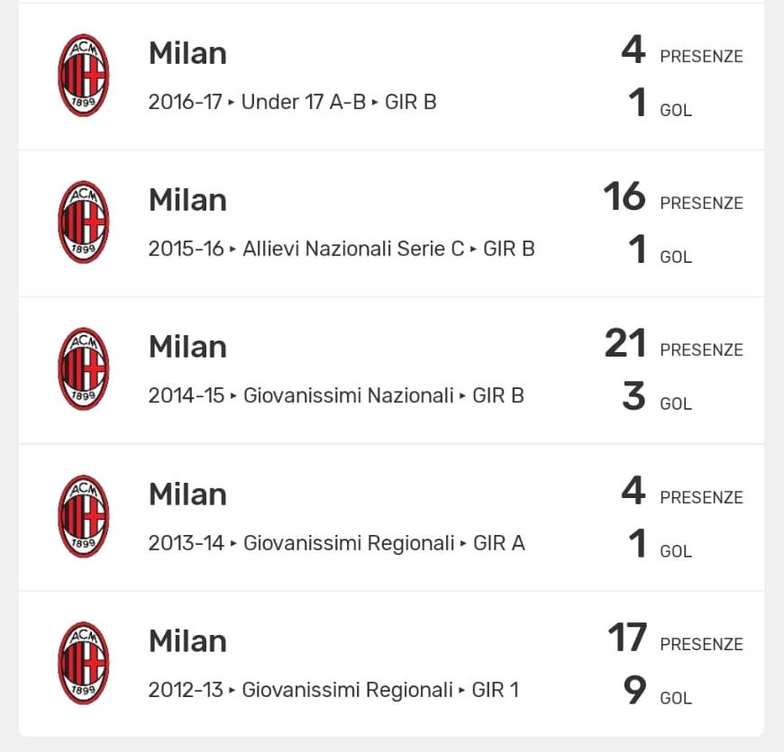 Il cammino di Ngom nel Settore Giovanile del Milan (Applicazione Sprint e Sport)