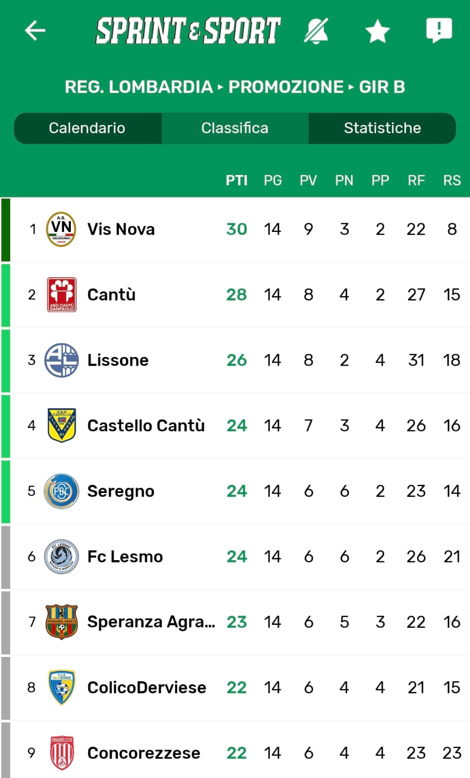 Le statistiche di squadra del Seregno, disponibili solo sull'app di Sprint e Sport: clicca l'immagine per scaricarla!