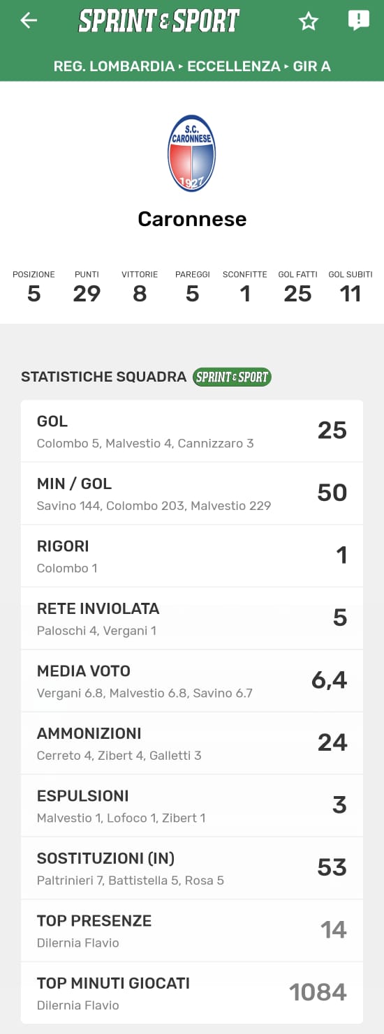 Le statistiche complete della Caronnese, disponibili solo sull'app di Sprint e Sport: clicca l'immagine per scaricarla!