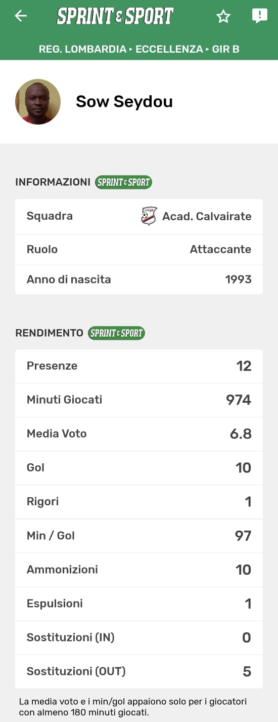 Le statistiche complete di Sow, disponibili solo sull'app di Sprint e Sport: clicca l'immagine per scaricarla!