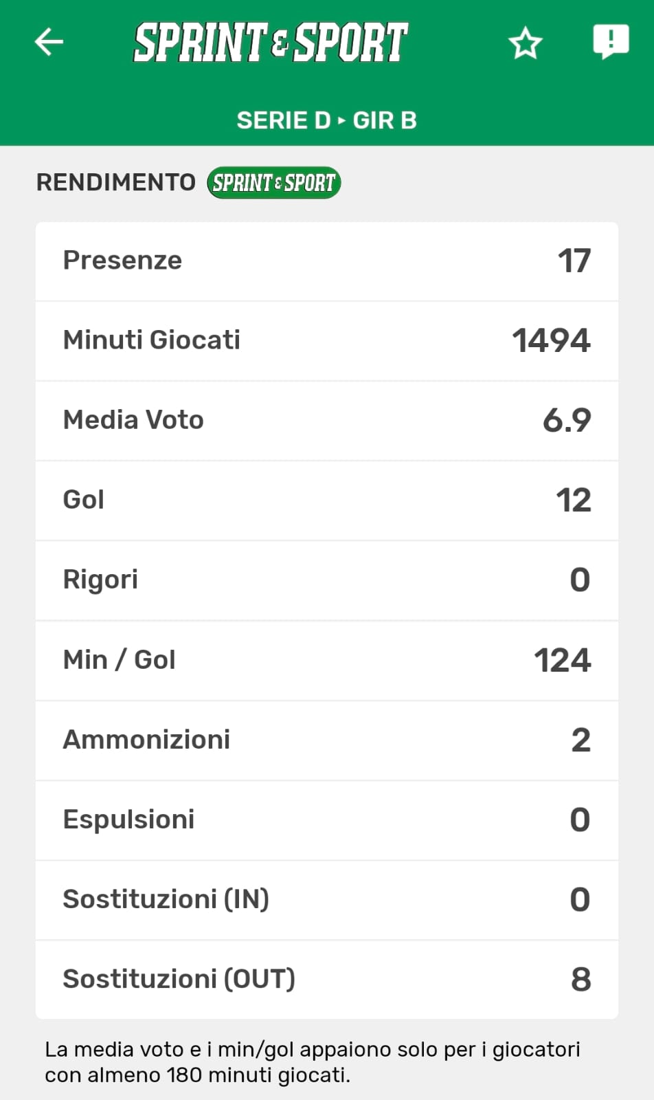 Le statistiche complete di Gobbi, disponibili solo sull'app di Sprint e Sport: clicca l'immagine per scaricarla!