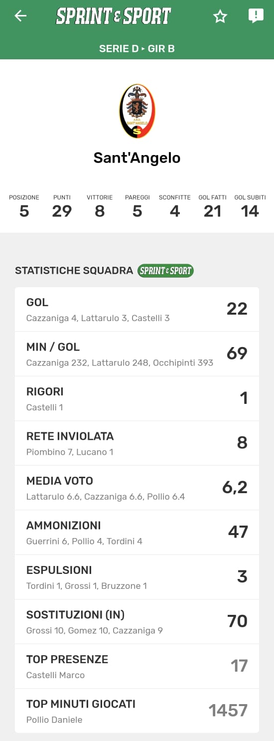 Le statistiche di squadra del Sant'Angelo, disponibili solo sull'app di Sprint e Sport: clicca l'immagine per scaricarla!