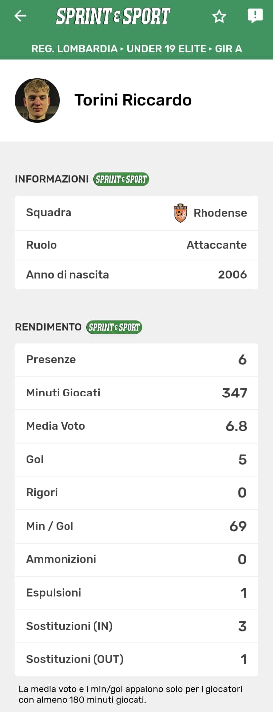 Le statistiche complete di Torini, disponisibili solo sull'app di Sprint e Sport: clicca l'immagine per scaricarla!