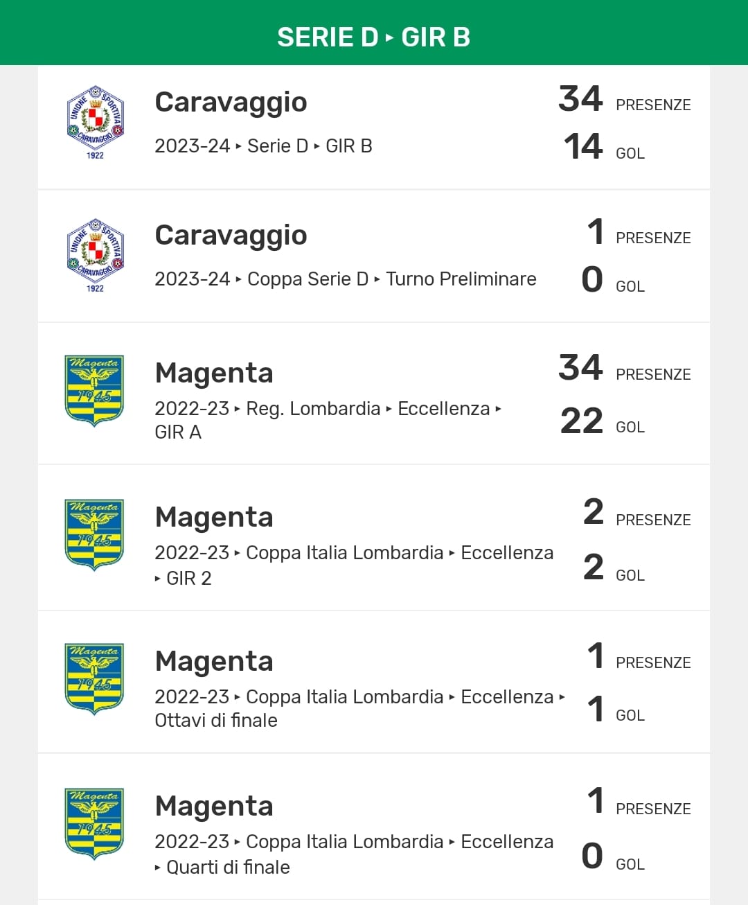 La carriera recente di Alessandro Doria: scarica la nostra App per tutte le statistiche individuali e di squadra della Serie D