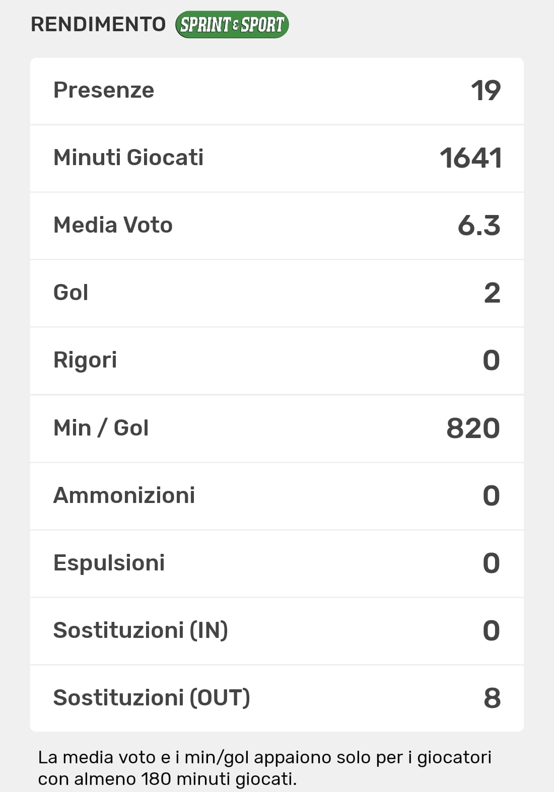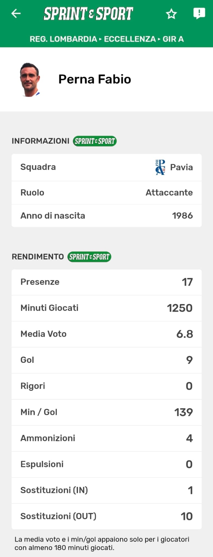 Le statistiche complete di Perna, disponibili SOLO sull'app di Sprint e Sport: clicca l'immagine per scaricarla!