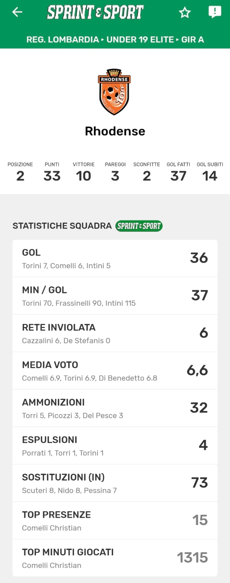 Le statistiche complete della Rhodense, disponibili SOLO sull'app di Sprint e Sport: clicca l'immagine per scaricarla!