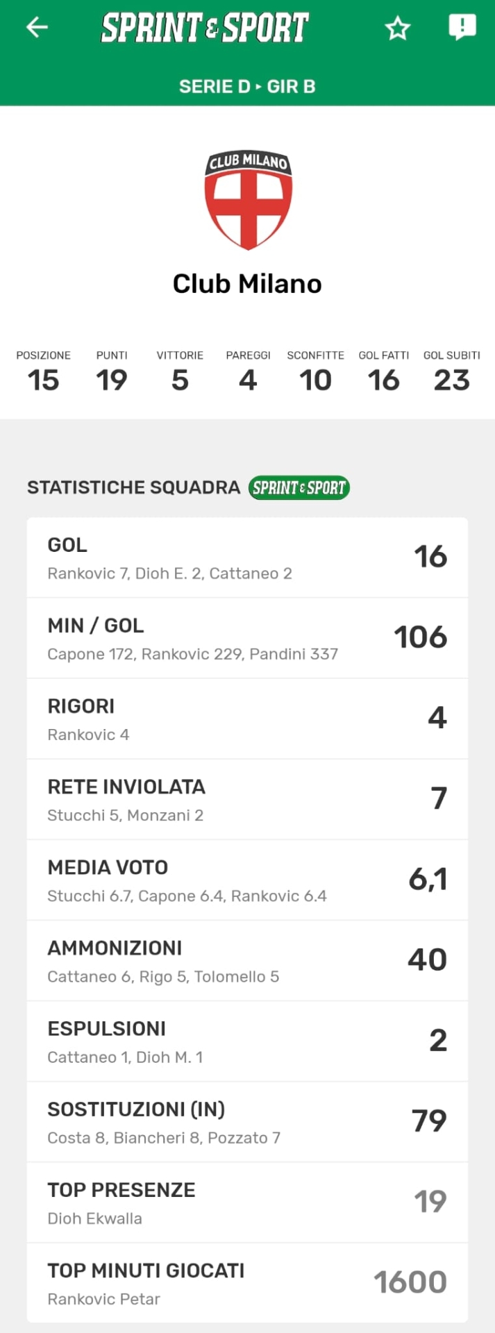 Le statistiche complete del Club Milano, disponibili SOLO sull'app di Sprint e Sport: clicca l'immagine per scaricarla!