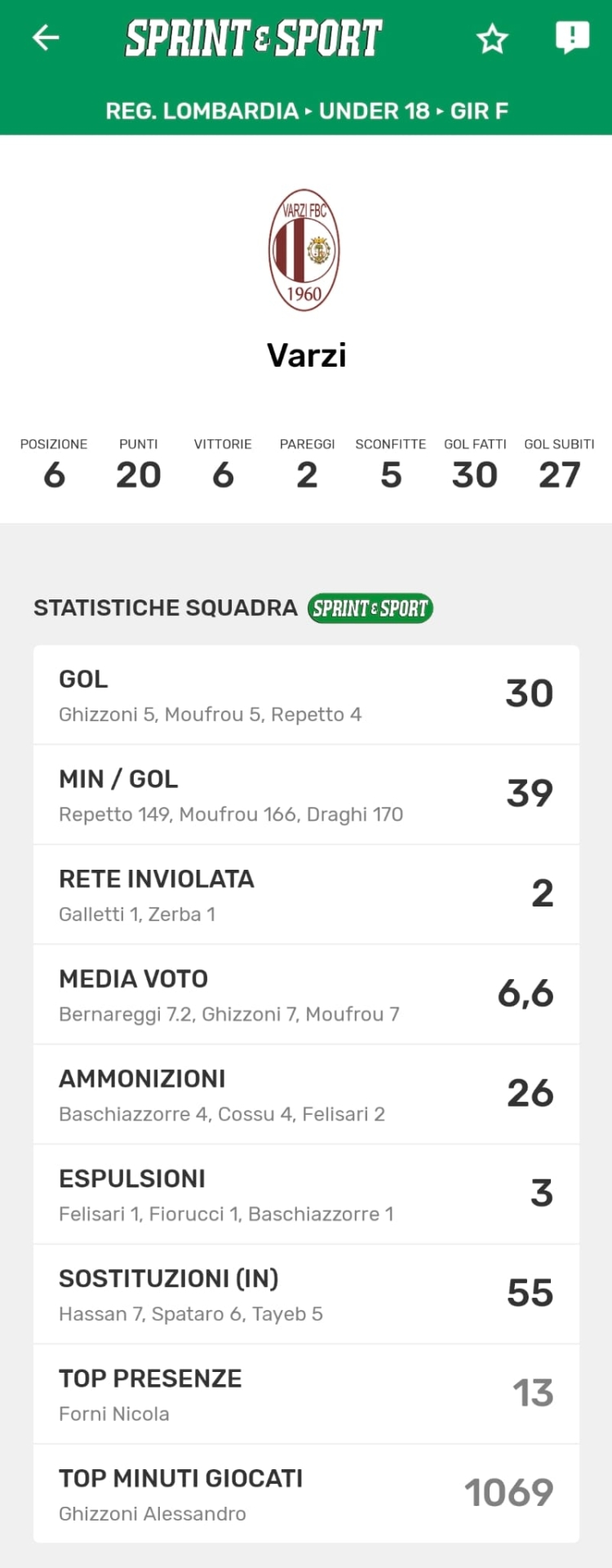 Le statistiche complete del Varzi, disponibili SOLO sull'app di Sprint e Sport: clicca l'immagine per scaricarla!