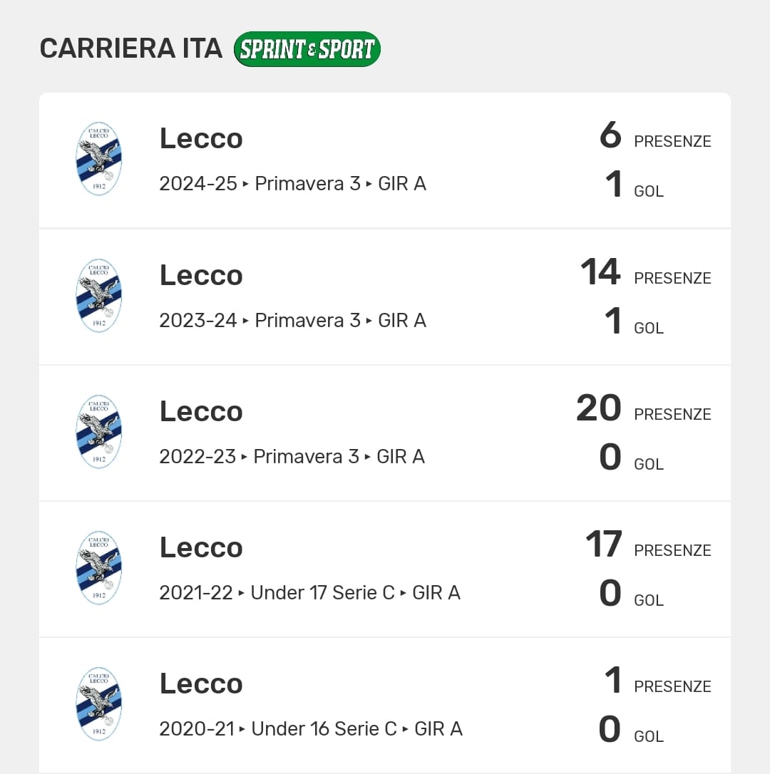 Il rendimento di Lorenzo Zulli nel Settore Giovanile del Lecco: sulla nostra App tutte le statistiche individuali della Serie D e di campionati Nazionali