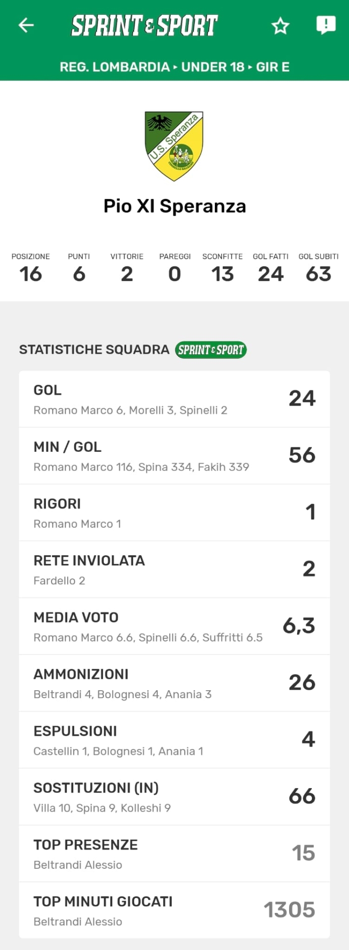 La stagione del Pio XI Speranza è stata segnata da enormi difficoltà, con la squadra che chiude il girone d’andata all’ultimo posto, a pari punti con la Laudense (6 punti). La prima vittoria è arrivata solo alla settima giornata di campionato, con un netto 3-0 contro il CG Bresso, ma il percorso è stato complesso e pieno di ostacoli. Nonostante i risultati deludenti, si sono visti alcuni barlumi di speranza, come nell’ultima partita contro la GS Azzurra, dove, pur perdendo 5-4, la squadra ha dato segnali di carattere e determinazione, dimostrando di non voler mollare. Servirà un cambio di passo netto nel girone di ritorno, ma si sa, la speranza è l’ultima a morire.