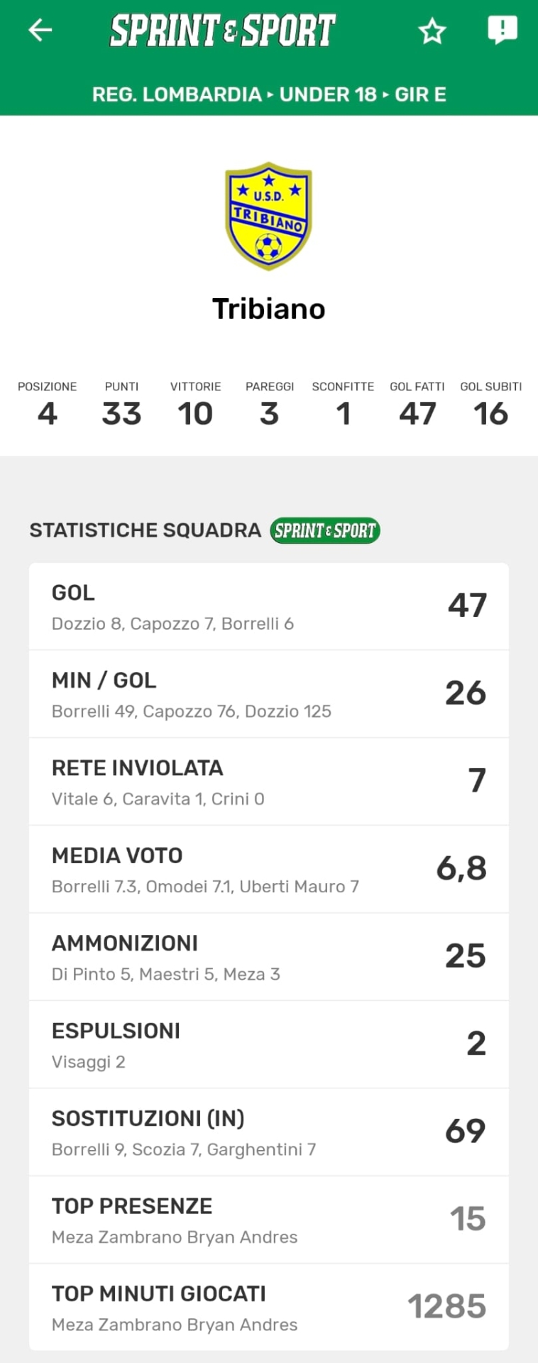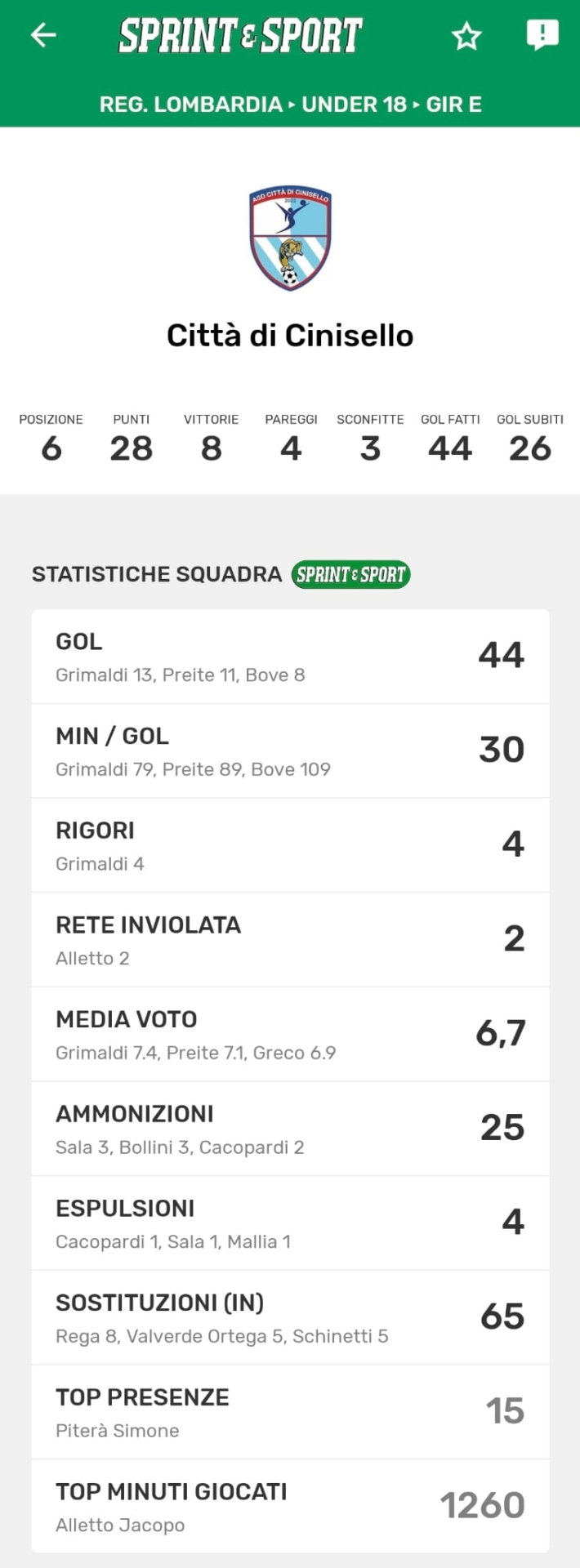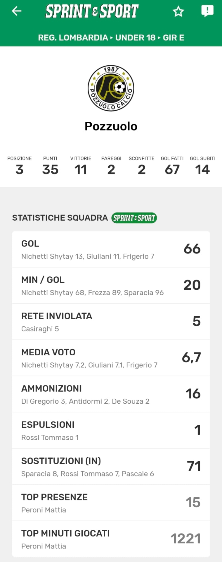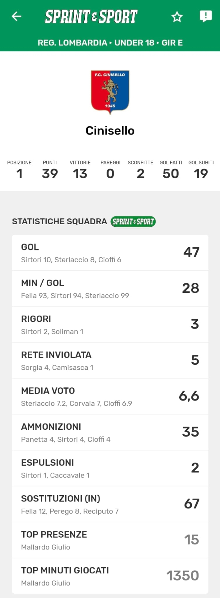 Le statistiche della TUA SQUADRA le trovi SOLO SULL'APP DI SPRINT E SPORT: clicca l'immagine per SCARICARLA!