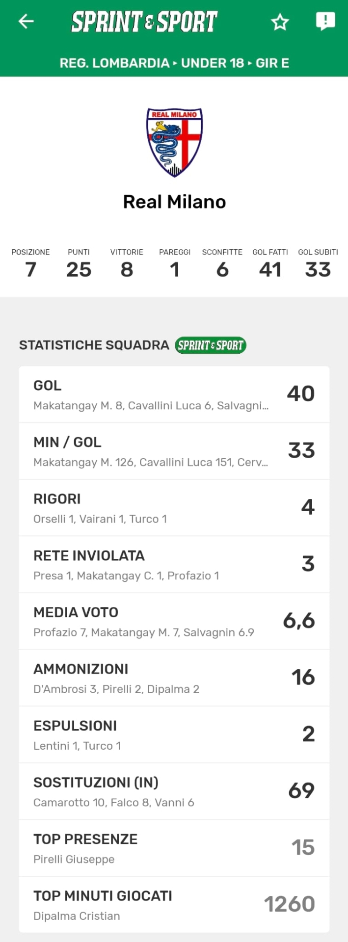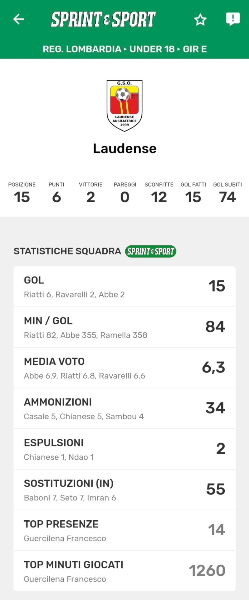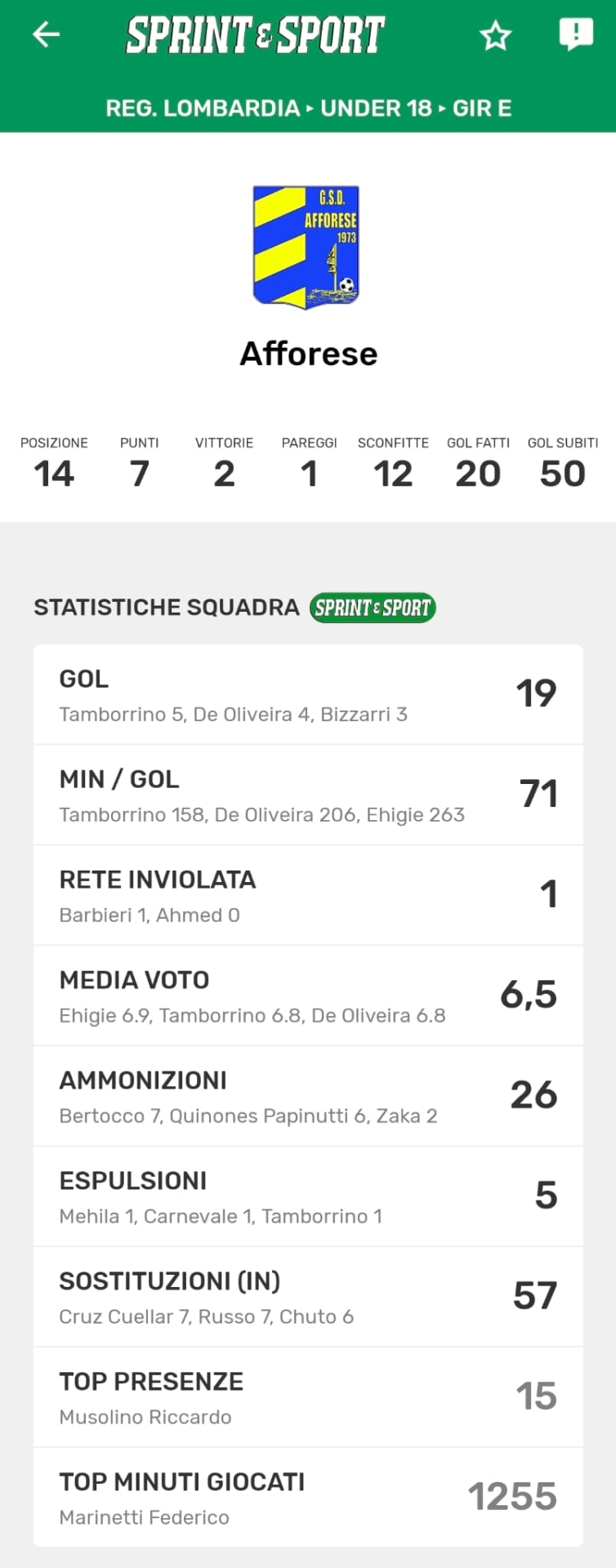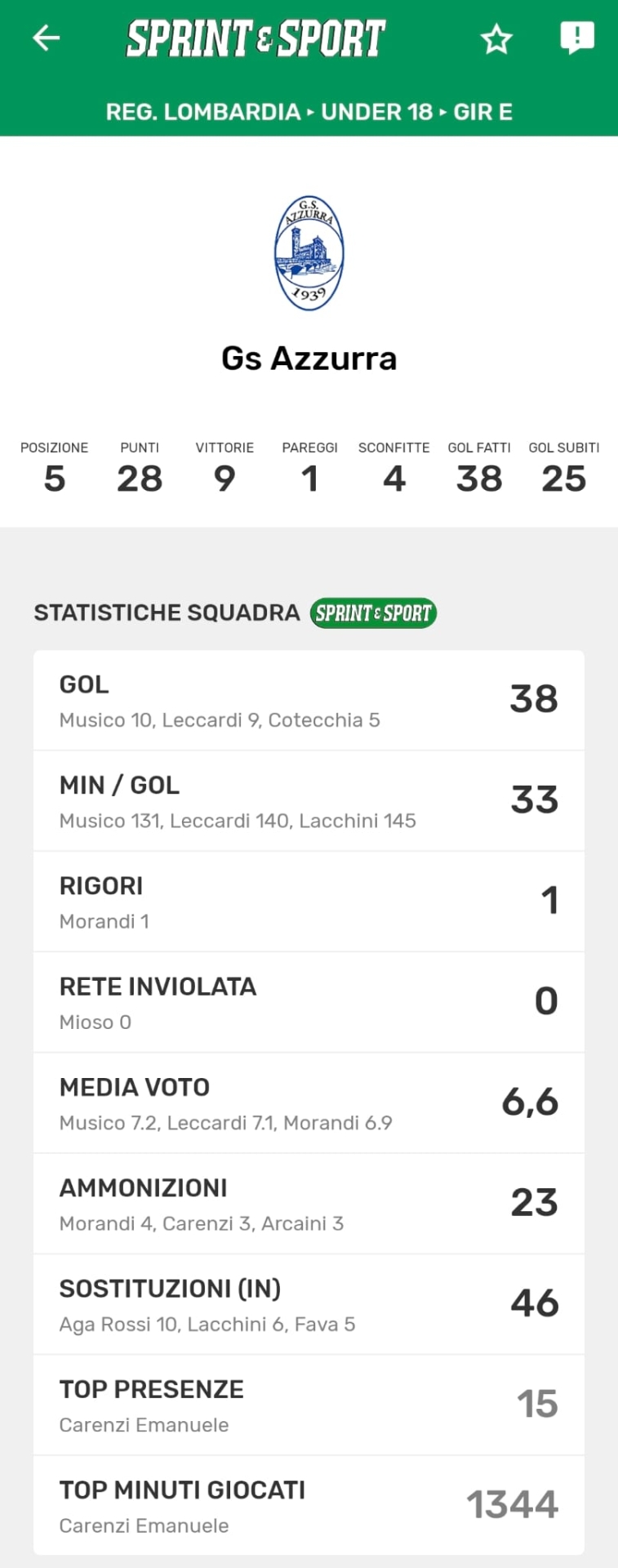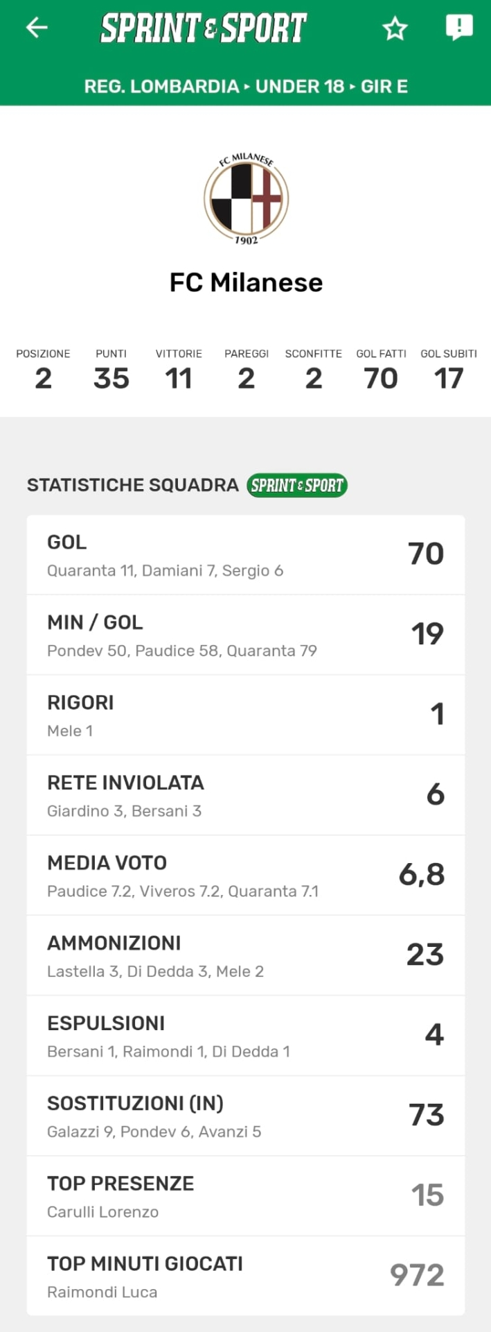 Le statistiche della TUA SQUADRA le trovi SOLO SULL'APP DI SPRINT E SPORT: clicca l'immagine per SCARICARLA!