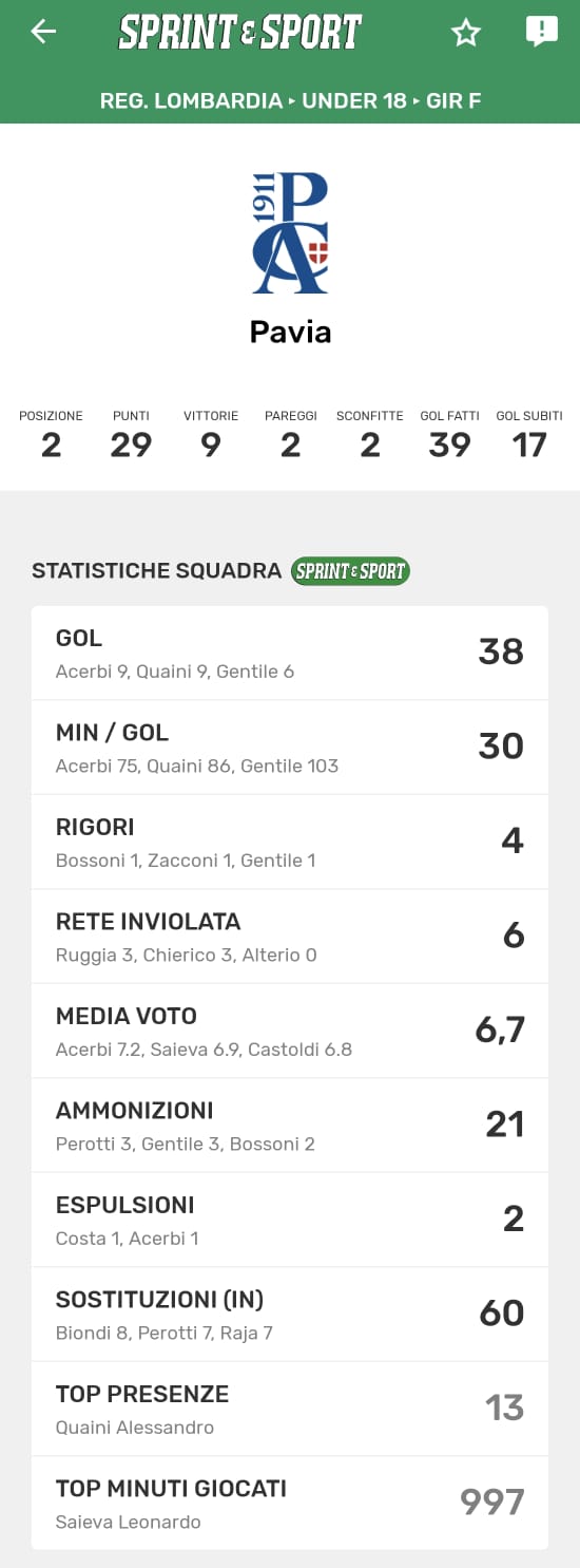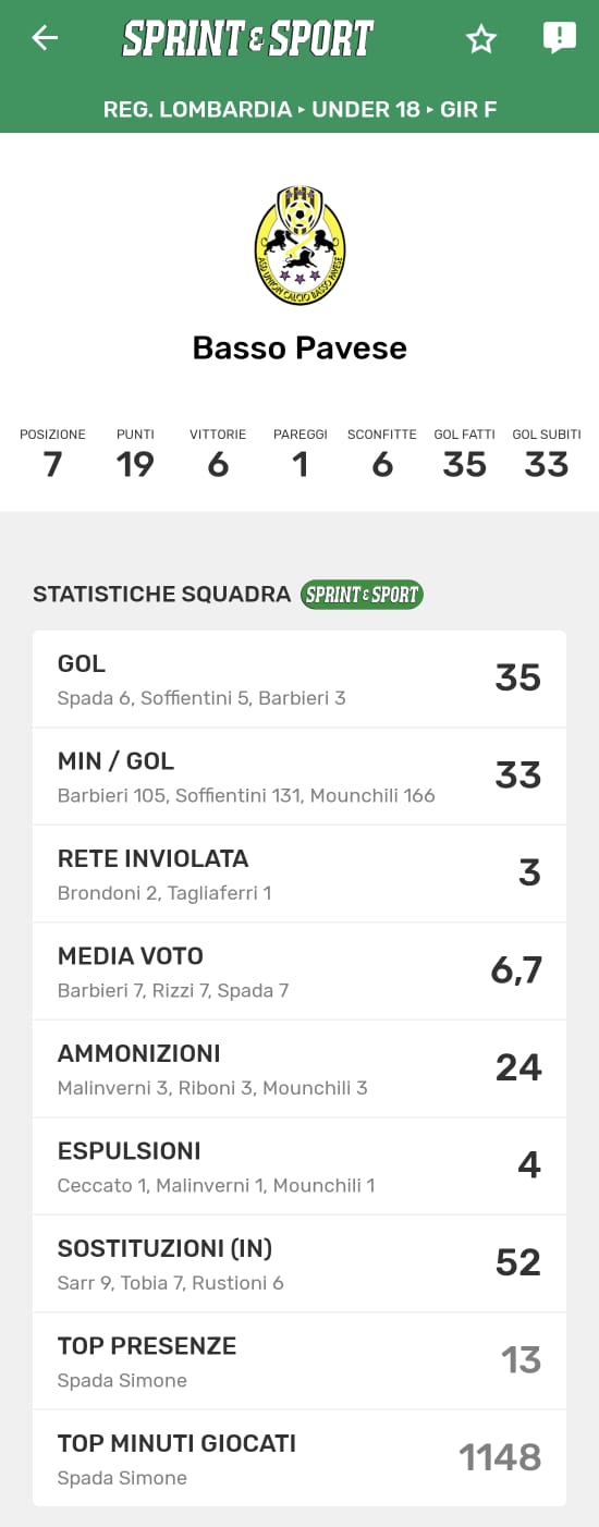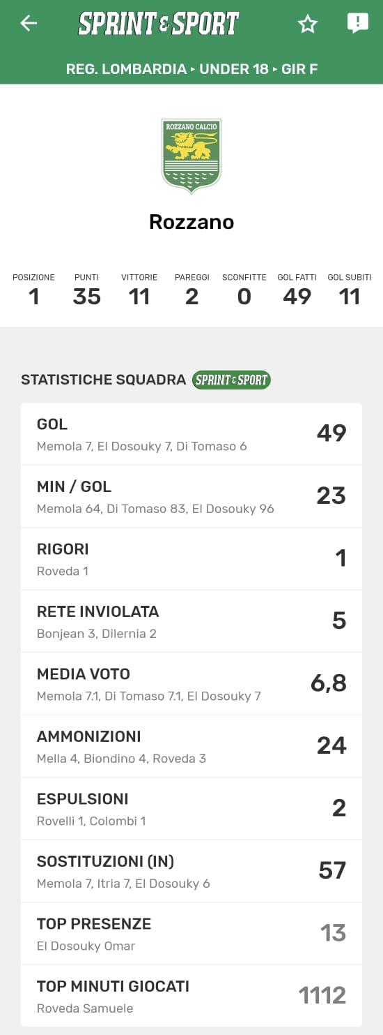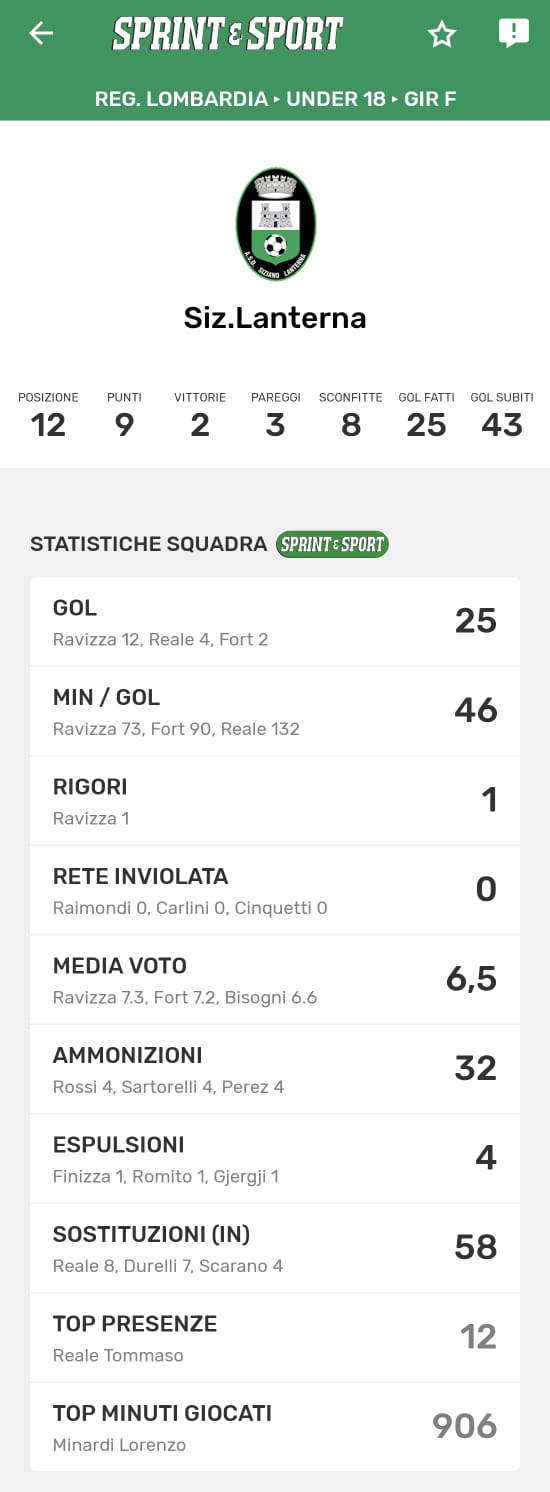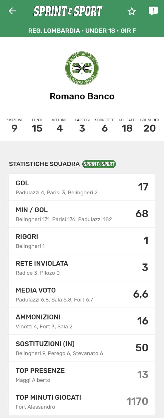 Le statistiche della TUA SQUADRA le trovi SOLO SULL'APP DI SPRINT E SPORT: clicca l'immagine per SCARICARLA!