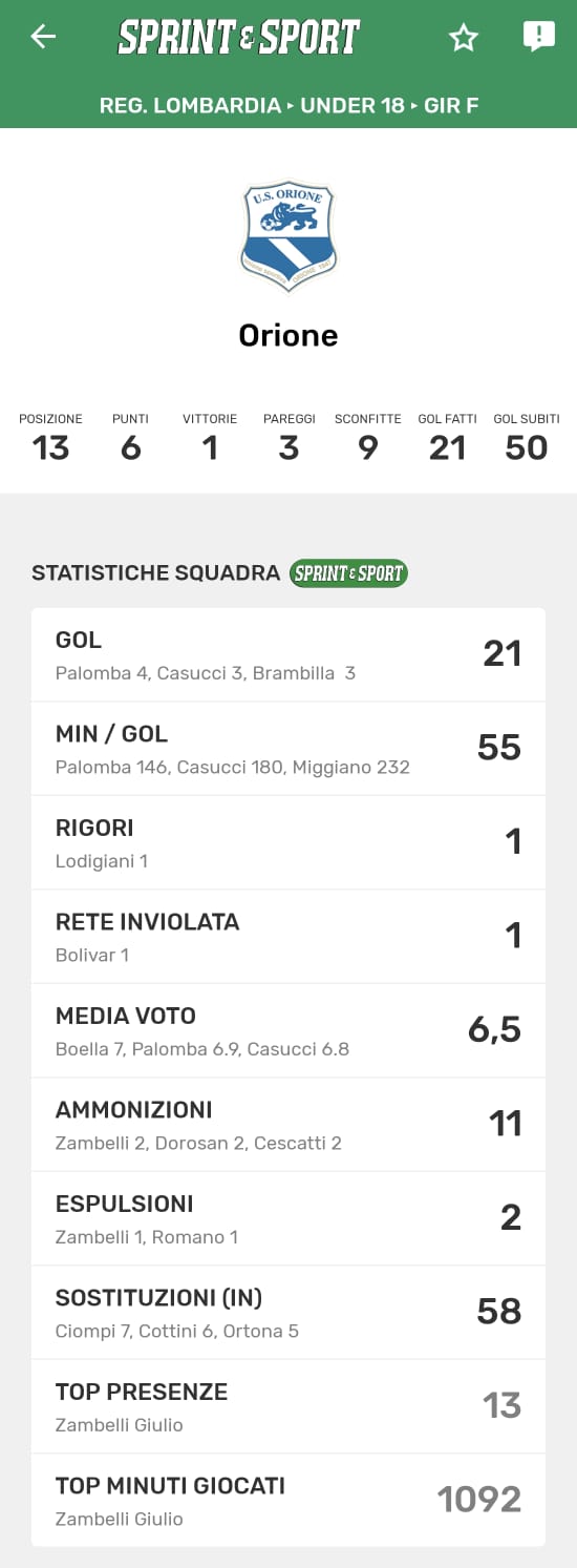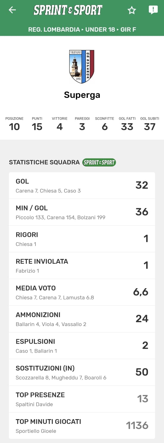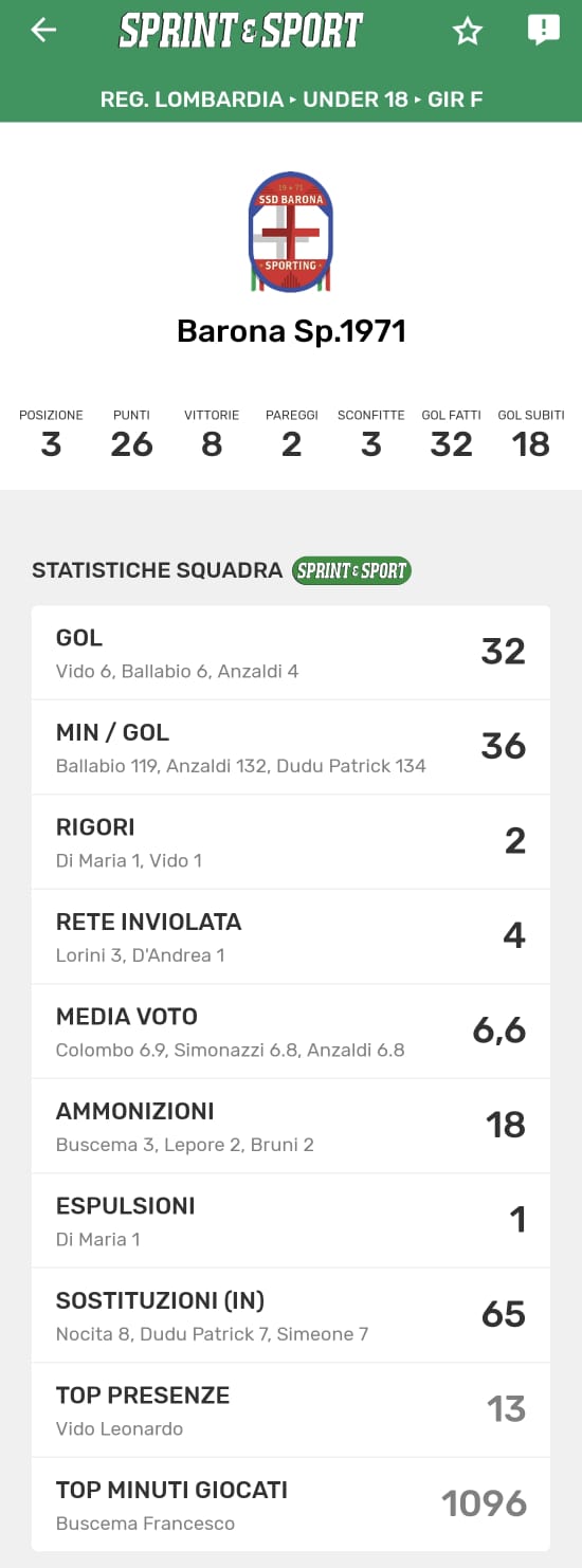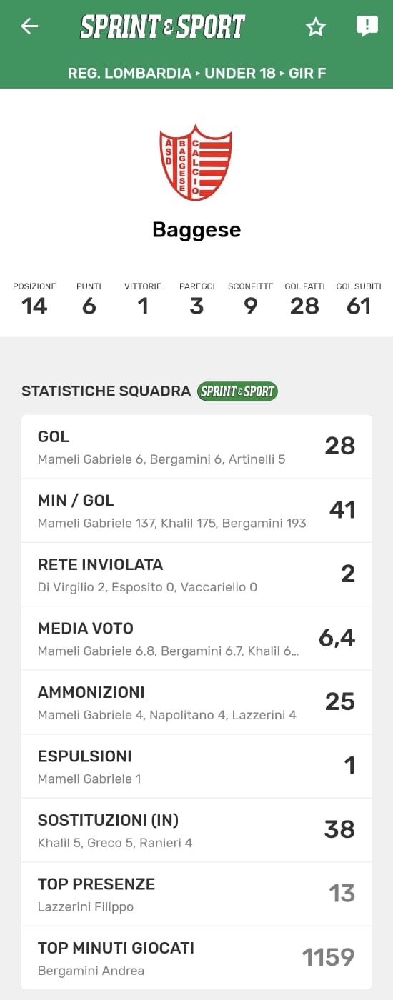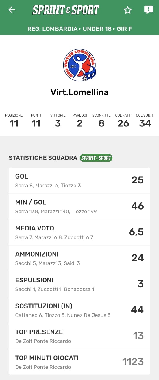 Le statistiche della TUA SQUADRA le trovi SOLO SULL'APP DI SPRINT E SPORT: clicca l'immagine per SCARICARLA!